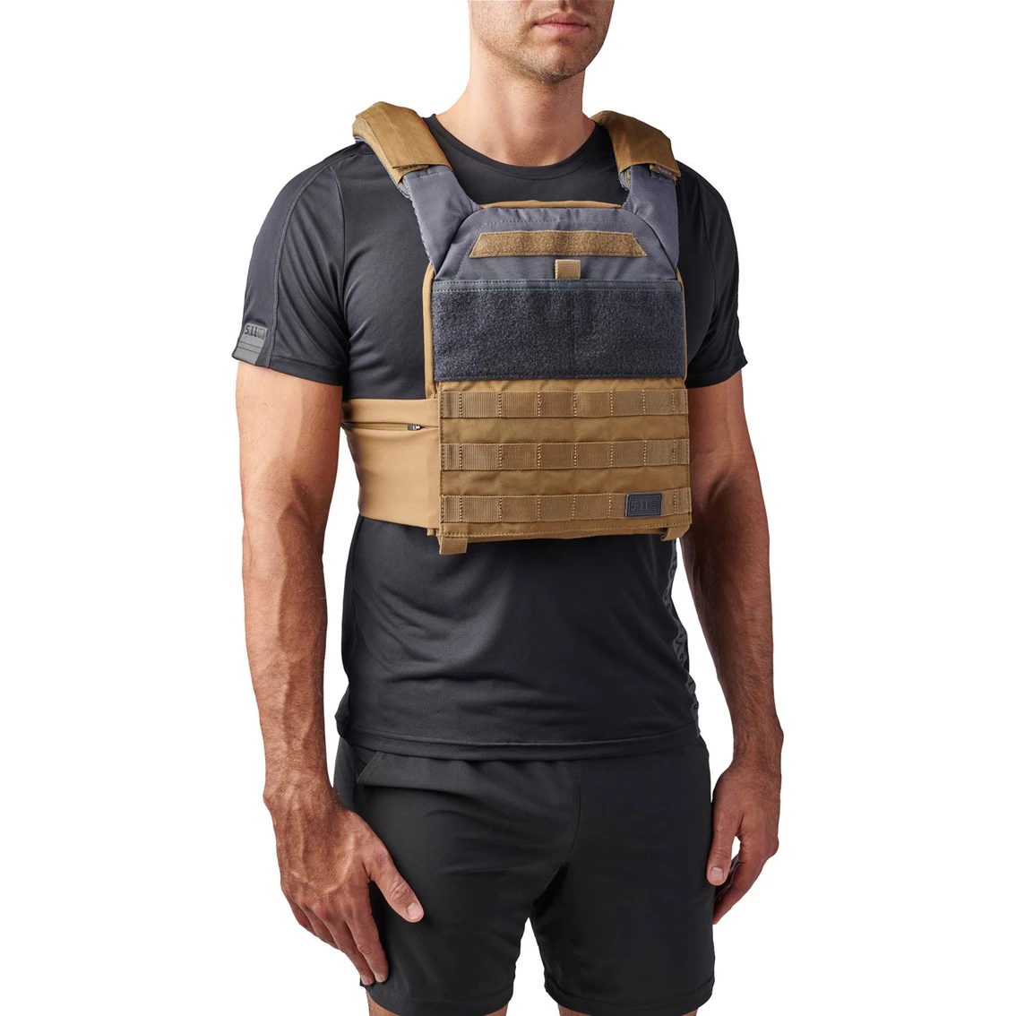 Unleash your inner savage with the TacTec Trainer Weight Vest that 5.11 designed specifically for training. Constructed from tough 600D polyester, the TacTec Trainer Weight Vest holds 5.11 and Rogue weight plates and the 5.11 TacTec Weight Plate Sandbag. Adjustable yoke shoulder straps with breathable mesh padding and breathable mesh body pads help you push your limits and keep you cool. The adjustable stretch cummerbund keeps the weight vest secure, while the pockets allow you to stash and access accessories. The front admin pocket and loop laser-cut and web MOLLE platforms offer additional carrying capacity and pouch customization. Internal retention straps hold the weight plates securely in place. The TacTec Trainer Weight Vest is compatible with the 5.11 PC Convertible Hydration Carrier. What are you waiting for? Get after it. One size fits all. Imported.