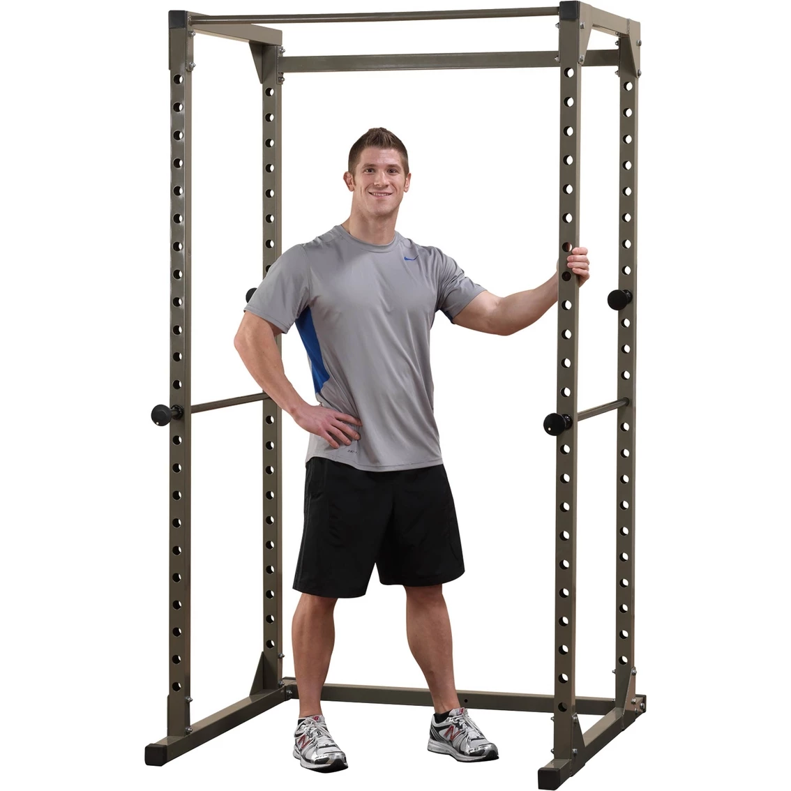 The Best Fitness BFPR100 Power Rack blends quality and value together in one of the most popular machines for strength training. Power racks are easy to use and provide a high level of safety to free-weight lifters. You would have a hard time finding a gym anywhere without one. The BFPR100 is affordable and perfect for anyone wanting a fully functional rack. But don’t be fooled by the price, the BFPR100 is made from heavy, 14-gauge steel and will handle weights up to 500 lb. It offers 23 adjustment positions for your lift offs and safeties that ensure a proper starting position for a multitude of exercises. Body-Solid makes more power racks than anyone in the industry, so add the BFPR100 to your lineup today. Model: BFPR100.