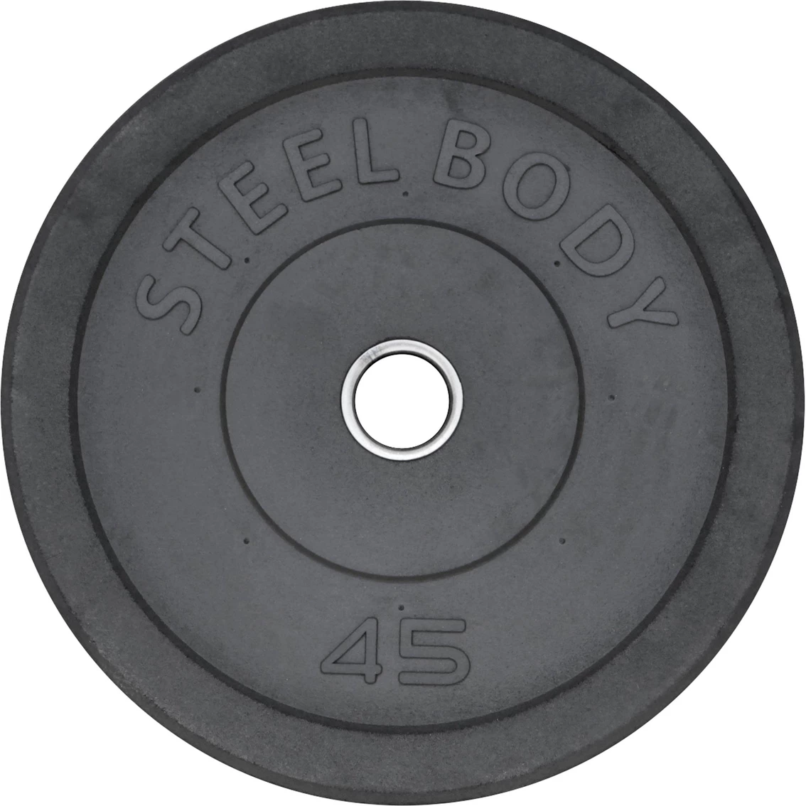 The Steelbody weightlifting plates are designed for safe power training and Olympic weightlifting. Constructed with hard rubber compound, it’s an ideal choice for beginners as well as elite athletes. IWF standard. 17.75 inch diameter. 2-inch center ring fits most Olympic bars. Minimal bounce, avoiding fracturing when dropped. One plate included. Model: STB-0045.