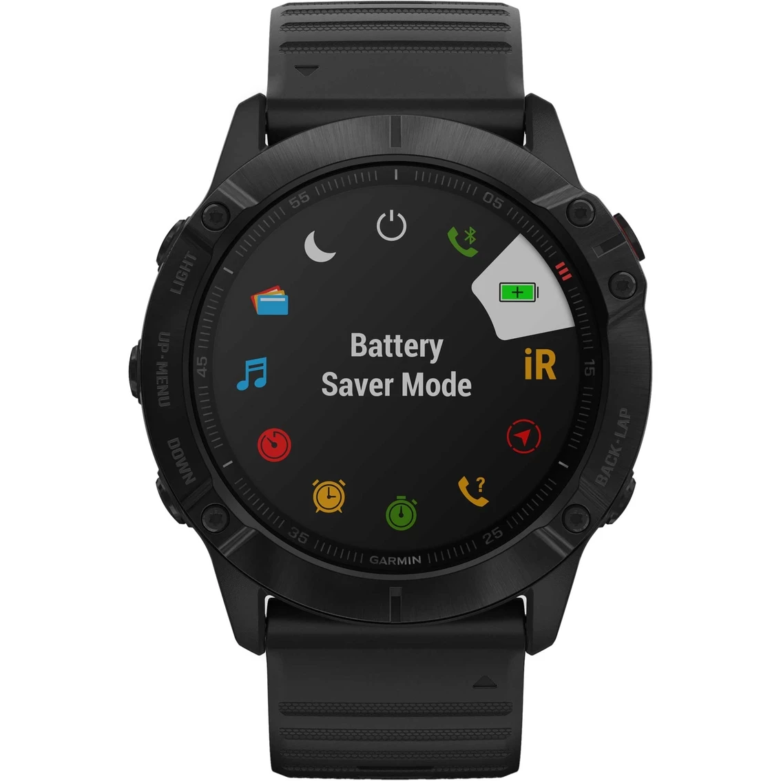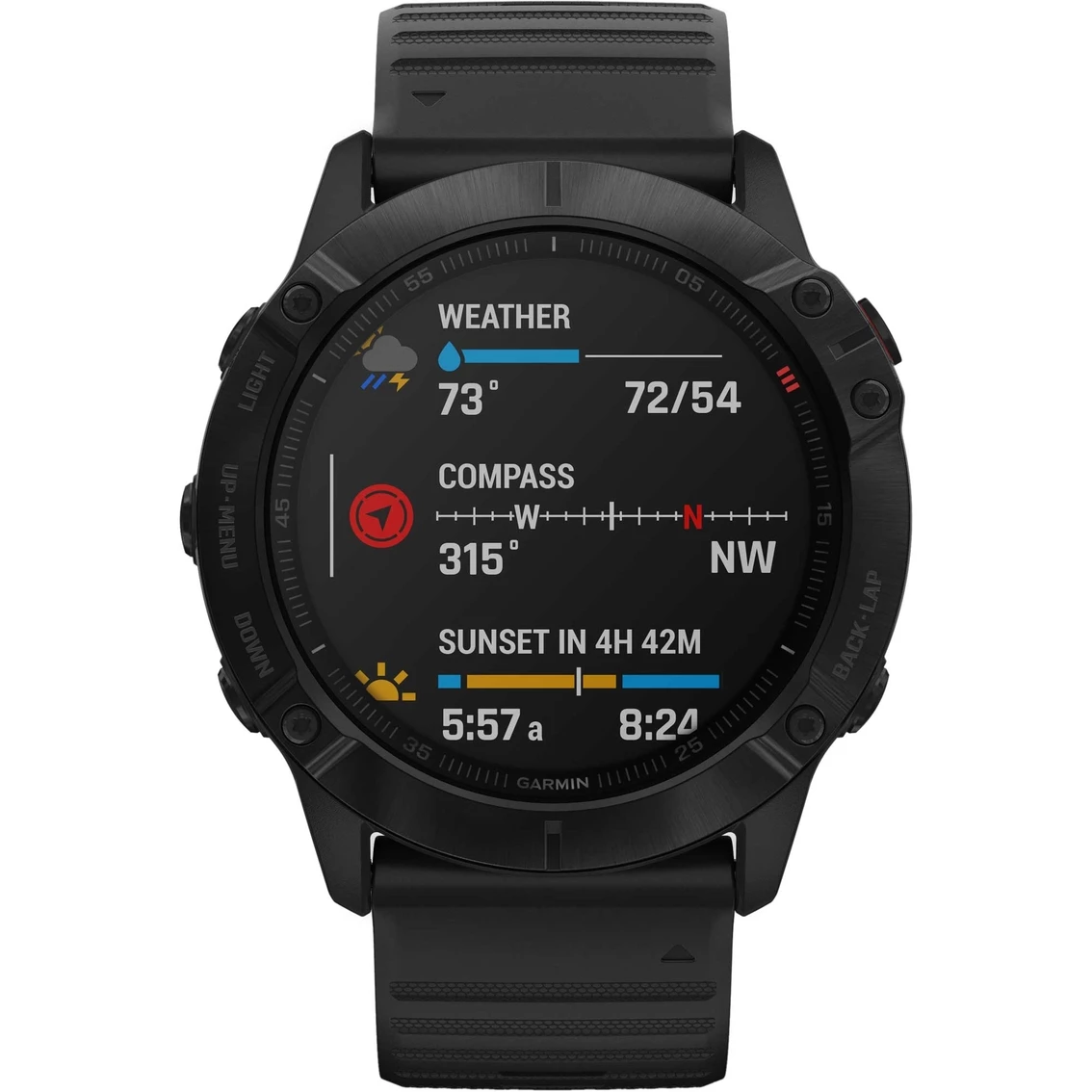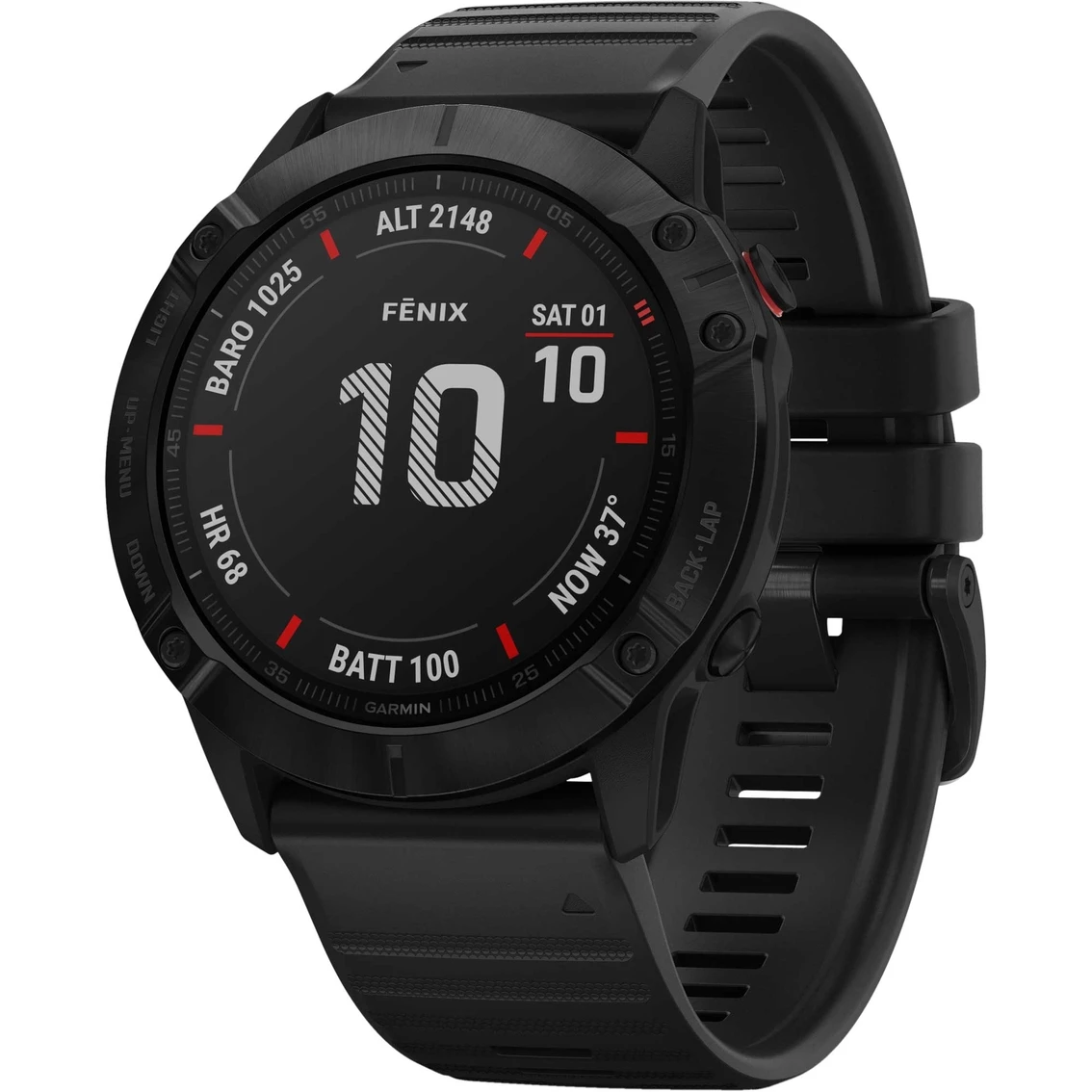 The Garmin Fenix 6 Series is the face of adventure. The next generation of ultimate outdoor GPS smartwatches is here. Built on the exploits of athletes and adventurers, the Fenix 6 Series is for those who push past limits and redefine expectations. Available in a range of sizes, finishes and premium feature levels, these rugged, tech-rich wearables are built to take on any challenge and to fit any active lifestyle — with enhanced wrist heart rate, Pulse Ox, outdoor navigation sensors, built-in activity profiles, performance metrics, contactless payments, smart notifications and more. Model: 010-02157-00.
