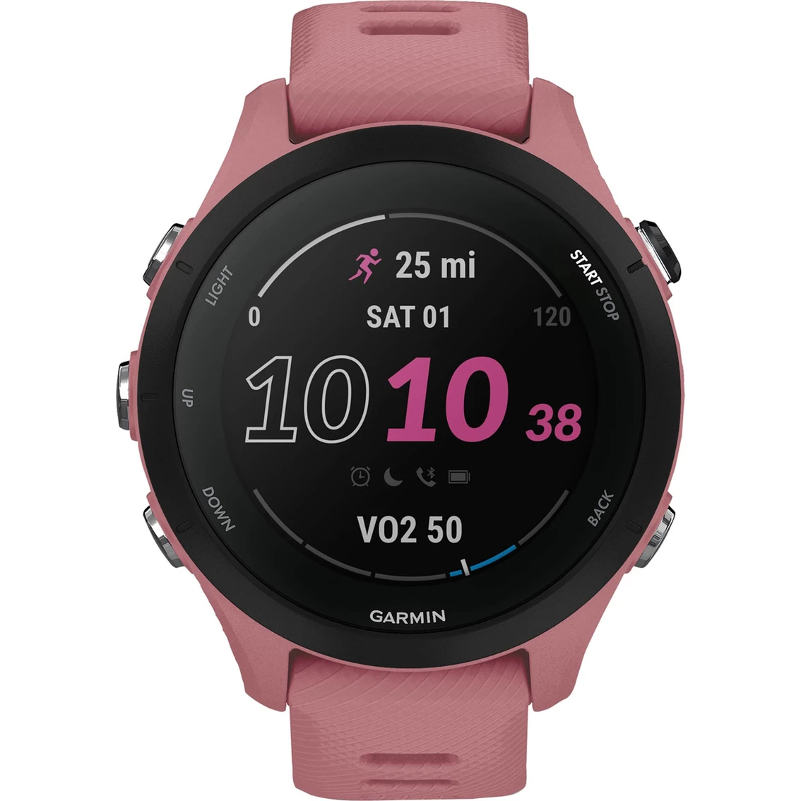 Run at a higher level with the Forerunner 255S smartwatch from Garmin. The running smartwatch helps you train and recover smarter with training status, running power, multi-band GPS and daily suggested workouts that adapt to your performance and goals. Plus, other new features — such as race widget — help you plan your race-day strategy, and morning report with HRV status reveals your overall health alongside the day ahead. And with Garmin Pay contactless payments with a supported card, it’s never been easier to buy that post-workout coffee — no matter how you work out — with more than 30 activity profiles, including triathlon, cycling, swimming and more. With Forerunner 255, you can get a continuous picture of your health, from training and recovery to sleep quality and overall wellness — and with up to 12 days of battery life in smartwatch mode and up to 26 hours in GPS mode.