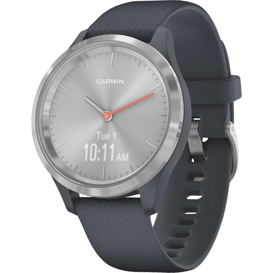Elevate your look with the Garmin vivomove 3S Stainless Steel Case Smartwatch with Silicone Band. This hybrid combines traditional analog style with smart features. When you receive text messages and other notifications delivered to your wrist, just swipe and real watch hands move to reveal a hidden touchscreen display. A variety of health and wellness features lets you track everything from stress to your body’s current energy level. When you want to get moving, connect to the GPS on your smartphone to track outdoor walks and runs. Get up to 5 days of battery life on a single charge — and an additional week in watch mode — so you can keep up with your busy life.