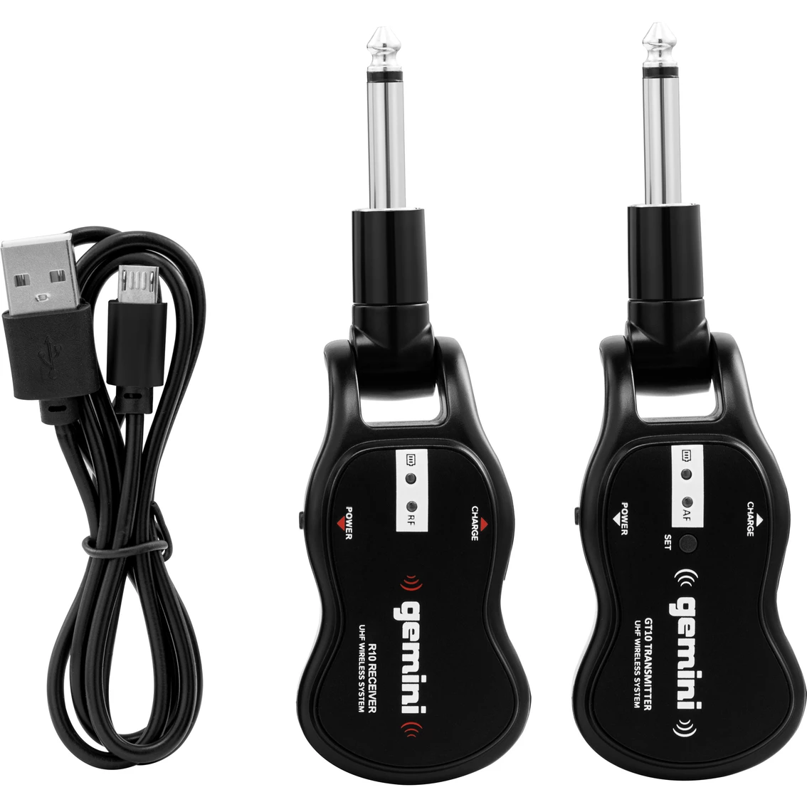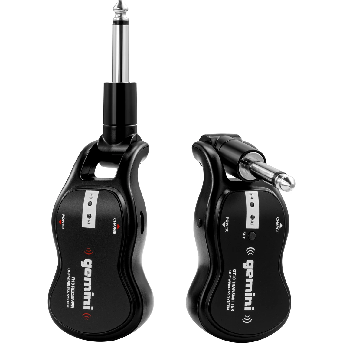 The GMU-G100 is a UHF Wireless Guitar System with rechargeable 1/4″ wireless transmitter and receiver. This expandable Plug & Play system will meet all your wireless guitar needs with USB rechargeable batteries and long-distance wireless connection, just plug in and power on and youโre ready to rock. The GMU-G100 is made for Electric and Acoustic/Electric guitars but will work with any instrument or audio device with a 1/4โ output that requires movement on stage, such as a Keytar or Electric Violin. Weโve put our years of industry experience into developing a high-quality wireless system at a low-price that only Gemini can provide.