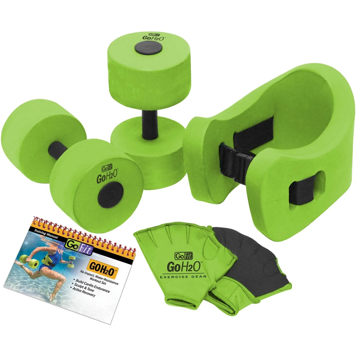 Stay cool and train in the pool with the water-resistance GoH2O Aqua Fitness Kit from GoFit! The GoH2O workout set combined with the resistance of water creates a low-impact, cardio-pumping workout that is gentle on your heart and joints. Model: GF GOH2O.