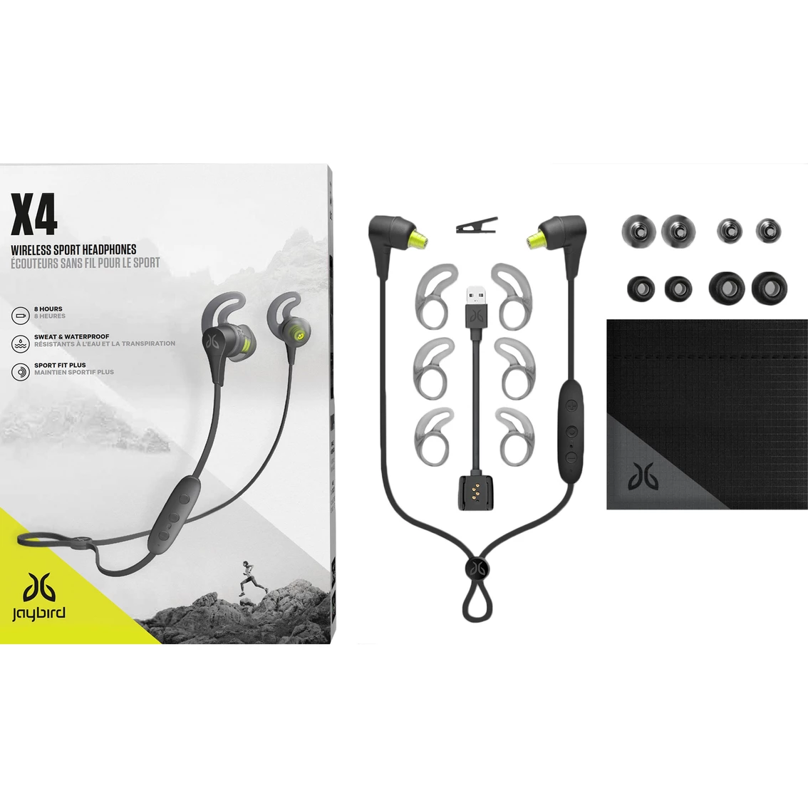 Pair your smartphone with these Jaybird X4 Wireless Sport Headphones and head to the gym or hiking trails in comfort. The thoughtful design works with music or your contact list, letting you take and make calls easily. Equipped with comply ultra soft tips and rated IPX7 to resist water and sweat, these Jaybird X4 wireless sport headphones create a comfortable experience with every jog or set. Model: 5GF338.
