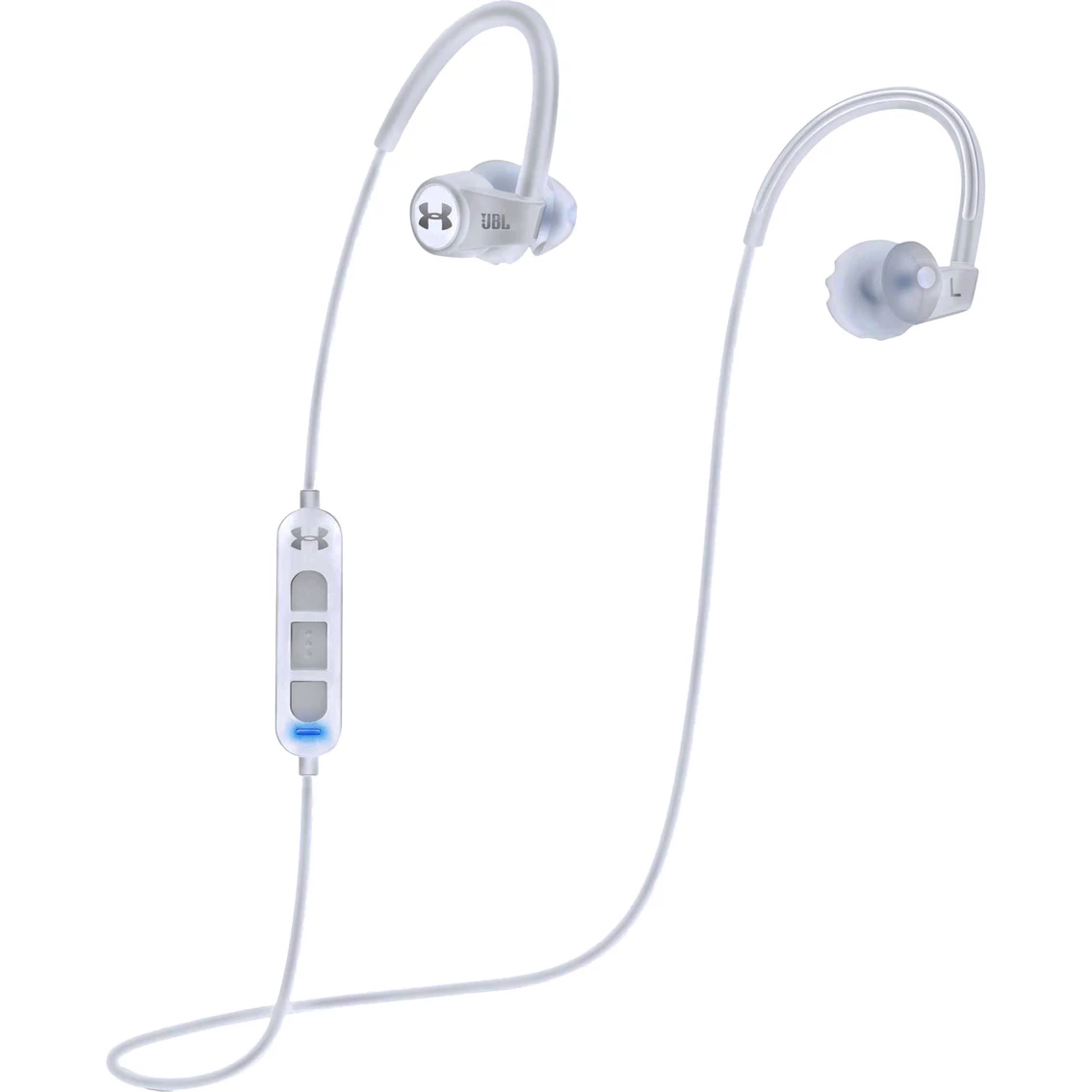The JBL Under Armor Headphones with Bluetooth Heart Rate Monitoring link to UA Band and your smart phone, plus feature Touch Sensor Updates for real-time feedback. All this functionality is combined with premium JBL sound quality and design. The special ear tips are designed to keep these headphones in place during your workout. A three-button, on-cable remote allows you to adjust the volume, skip songs and play and pause music. The earpieces are sweat-proof, and the built-in rechargeable battery offers up to 5 hours of playback. There’s also a tiny built-in microphone so you can take hands-free calls. Model: UAJBLHRMB.