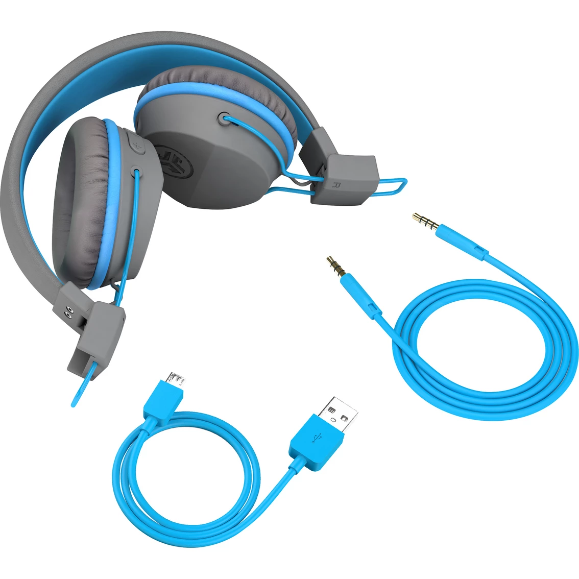 JLab Audio JBuddies Studio offer the ease of Bluetooth and versatility to go wired at school or while traveling. With a 24+ Hour battery life, JBuddies Studio provide all-day comfort for school or home with JLab’s on-ear Cloud Foam Cushions. Using Shareport, two kids can listen to their favorite music or watch a movie with the built-in together. Keep young ears safe with a volume regulator so the kids can listen to music 85db and below, perfect for sensitive and growing ears. Built in controls and microphone help kids go from wired to wireless quick and simple. No fuss necessary. Model: HBSTUDIORGRYBLU4.