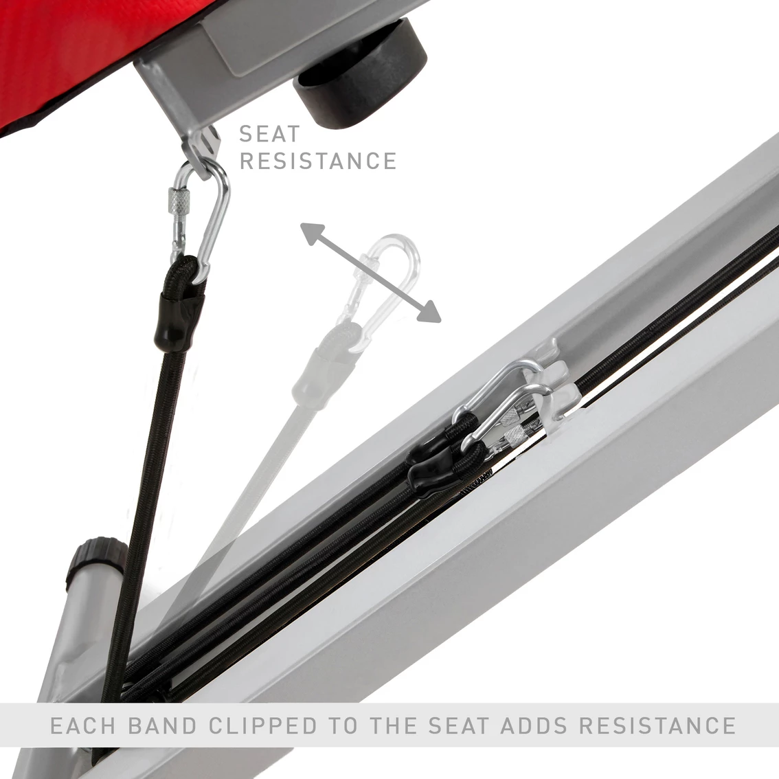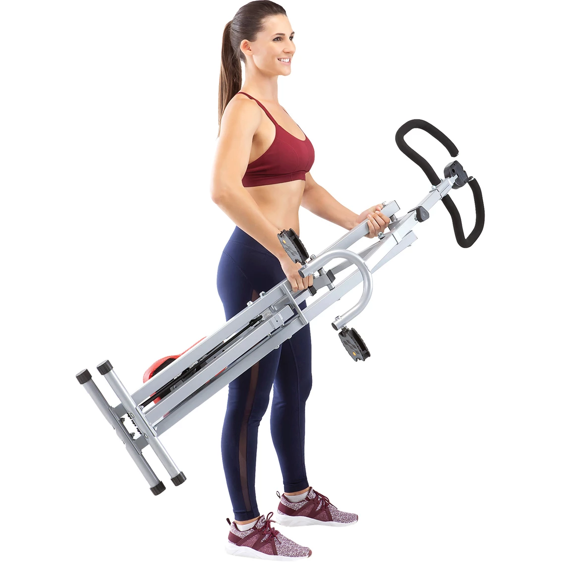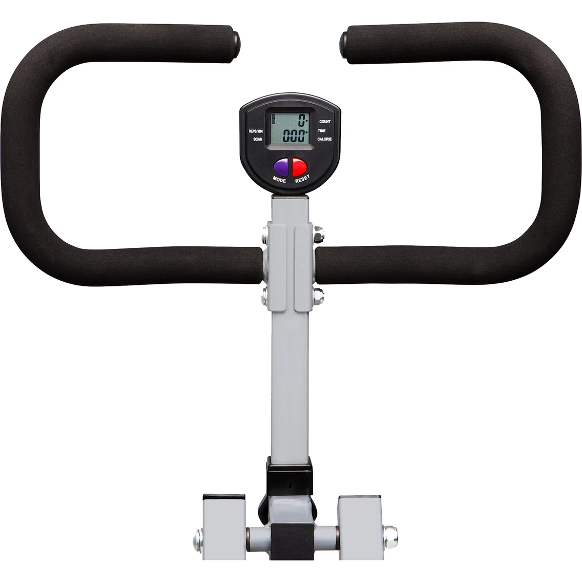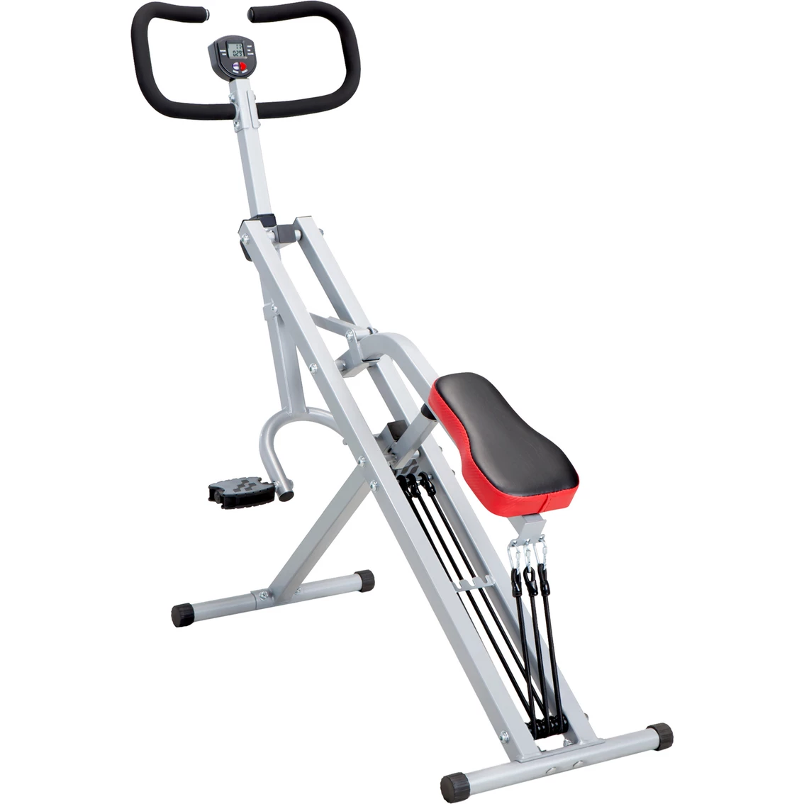 The Marcy Squat Rider Machine is a light and compact squat machine that does not require weights. The Squat Rider Machine uses three resistance bands under the seat to provide resistance during your squats. To add resistance, simply hook the bands under the seat and to drop resistance, unhook the bands as necessary. As opposed to free form squats with or without weights, the handle on the Squat Rider Machine ensures proper form while squatting. In addition, using the handle provides a slight workout for your arms while squatting. The included computer tracks count, time and calories to help you measure progress. The seat and handle can be adjusted to fit your needs. For added convenience, the Squat Rider folds when not in use so you can easily store the unit. Model: XJ-6334.