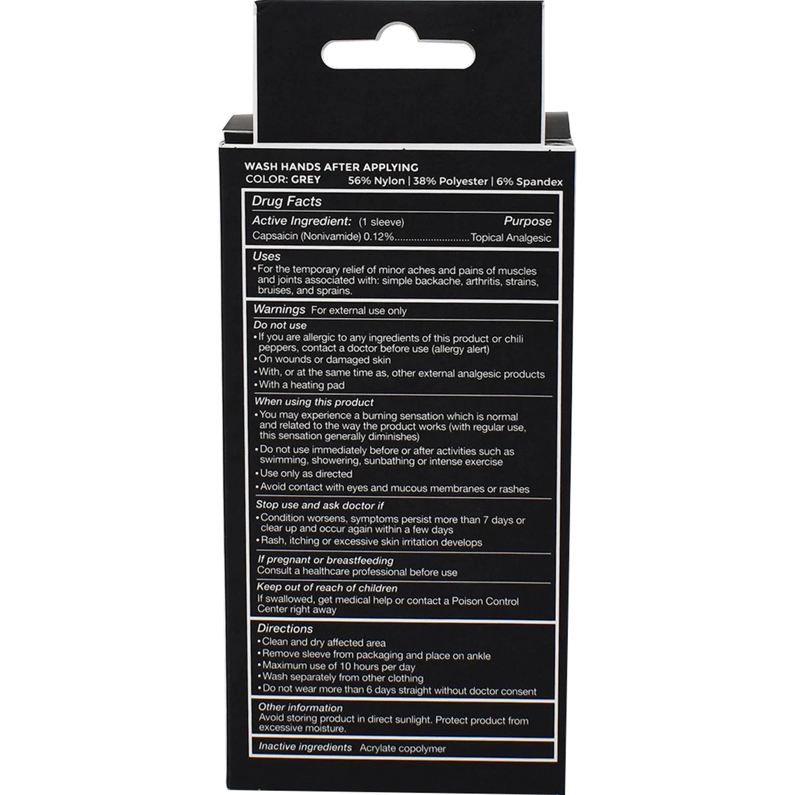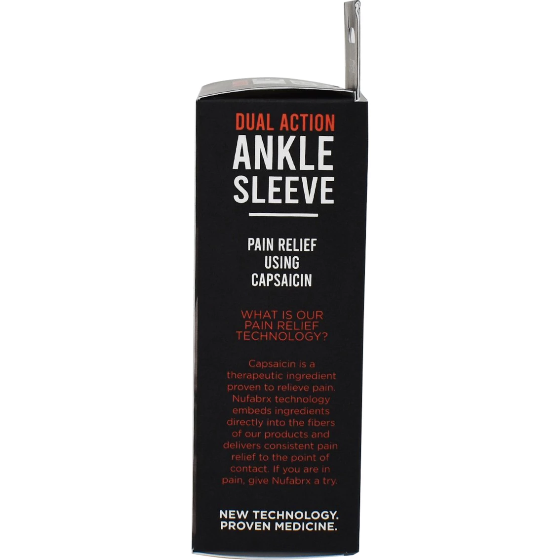 The Nufabrx Pain Relieving Medicine Compression Ankle Sleeve is good for 15+ washes and 150 hours of use. Nufabrx products activate when exposed to your body temperature and skin’s moisture. Nufabrx Ankle Sleeve is ideal for people who are on their feet for extended periods of time, experience swelling in their ankle or enjoy running, walking, hiking or other activities where you move your ankle. Experience all day pain relief without having to reapply creams, or taking more pills. Model: SK30-CP00-BKGLRG.