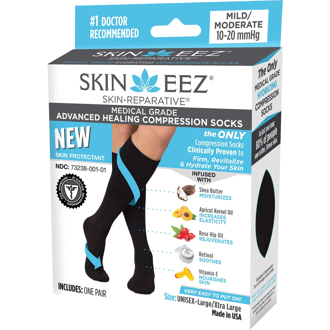 Skineez Skin Reparative Sport Advanced Healing Compression Socks are best for those who are active and on the go. This compression level is perfect for athletes. These socks are ultra-soft, odor resistant, supple fabric is very easy to put on with cushioned toe and heel pocket for greater fit and comfort. These compression socks are sure to increase support for calves, ankles, and shins.