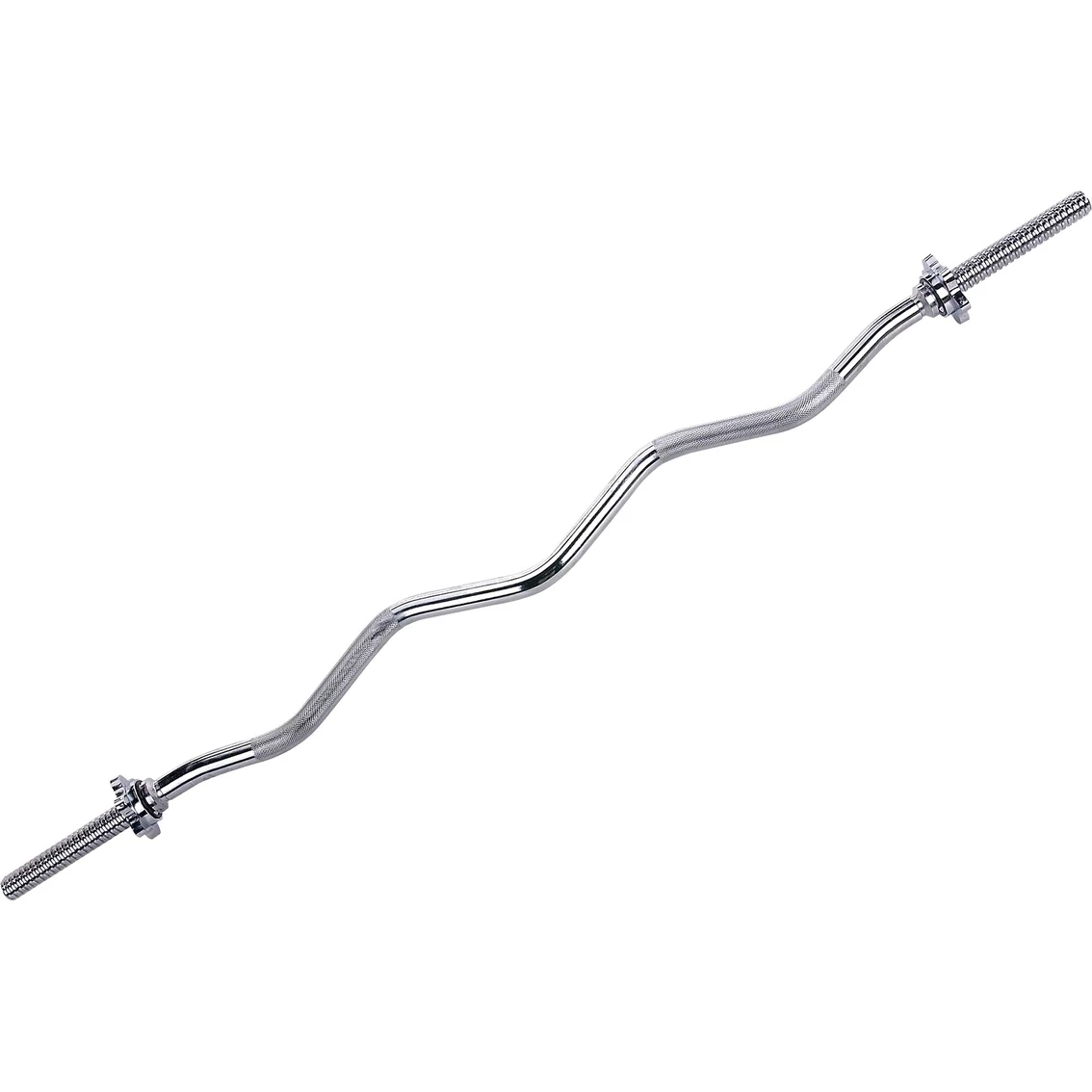 The Sunny Health and Fitness 47 in. Threaded Solid Chrome Curl Bar is made of solid steel. Threaded ends with star-lock collars assure a secure fit. Bar includes single-piece inside collars. Model: STCB-47.