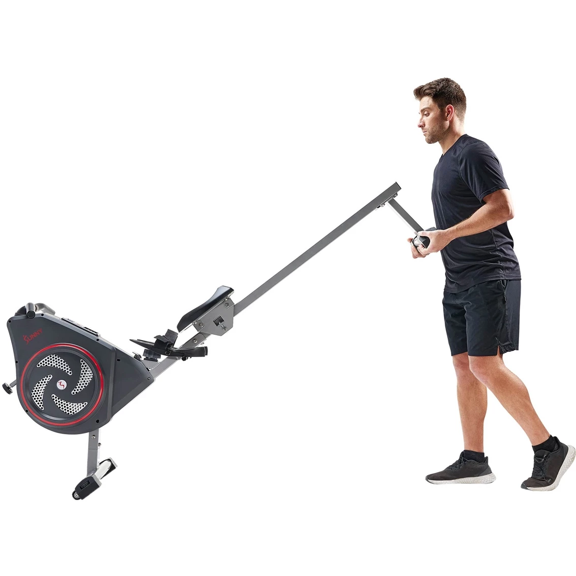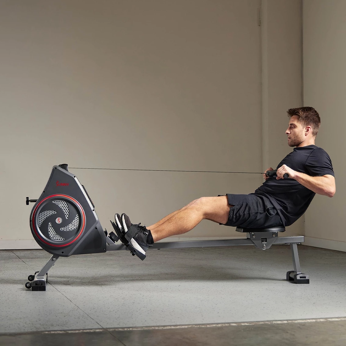 Brace for the exhilarating and heart-pumping gust of wind with each row from the Sunny Health and Fitness Air + Magnetic Rowing Machine โ SF-RW520008. Featuring a unique dual resistance system and 300 LB max weight capacity, the Air + Magnetic Rowing Machine lets you work out and exercise the way you want. Get further customized training plans and workout regimens by connecting to the SunnyFitยฎ app. Row along with our Sunny Health & Fitness trainers, join the Sunny community, and share fitness tips and advice. Measure your progress and result against other rowing enthusiasts on the rowing machine leaderboard. Get a high-intensity connected home gym full body workout with the Sunny Health and Fitness Air + Magnetic Rowing Machine. Model: SF-RW520008.