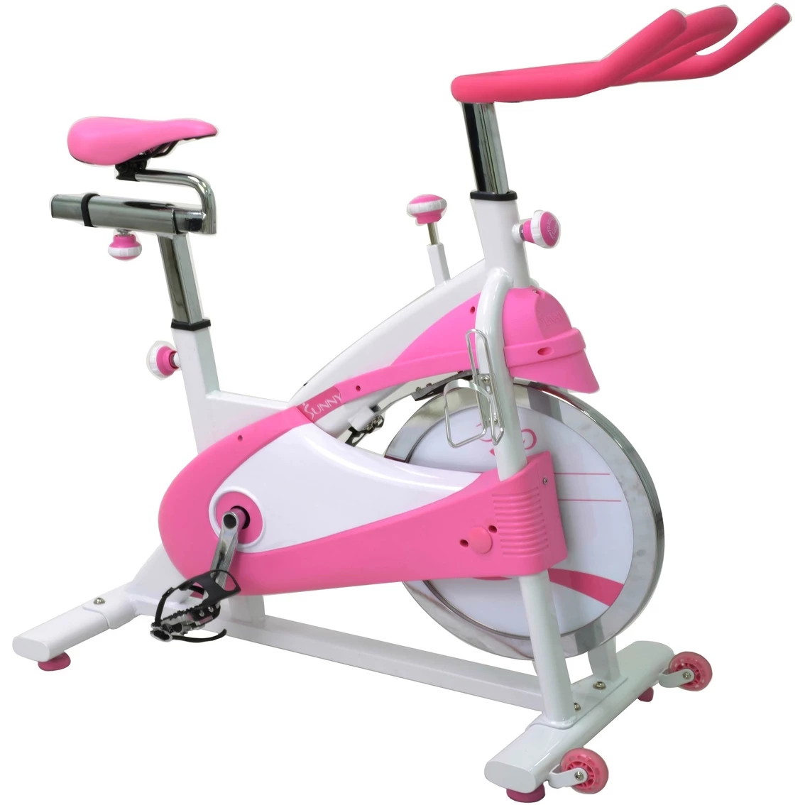 Spin into shape with the top of the line Sunny Health and Fitness Belt Drive Premium Indoor Cycling Bike. This bike offers all of the necessities for an intense yet enjoyable cycling workout in the comfort of your own home. With a newly improved smoother and quieter belt drive, fully adjustable seat and handlebars, adjustable resistance and built-on transportation wheels, the Sunny Health and Fitness Belt Drive Premium Indoor Cycling Bike is designed for convenience while also providing the challenging feel of outdoor cycling. The quality of its heavy-duty steel crank and frame is built to withstand time and go the distance with users of all sizes and levels. Model: P8150.
