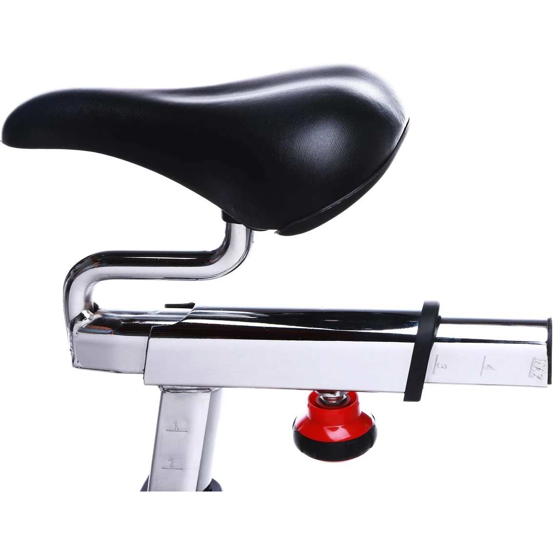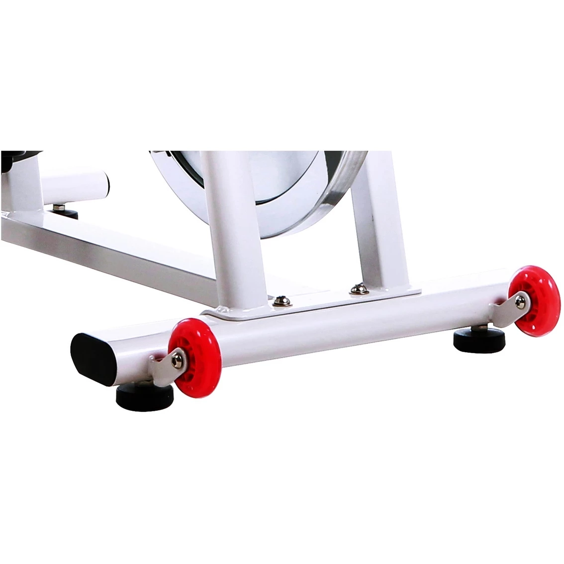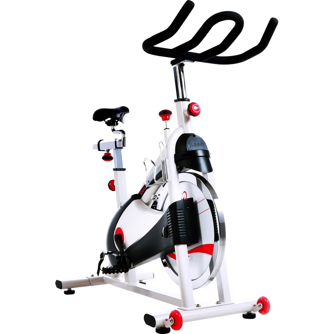Spin into shape with the top of the line Sunny Health and Fitness Belt Drive Premium Indoor Cycling Bike. This bike offers all of the necessities for an intense yet enjoyable cycling workout in the comfort of your own home. With a newly improved smoother and quieter belt drive, fully adjustable seat and handlebars, adjustable resistance and built-on transportation wheels, the Sunny Health and Fitness Belt Drive Premium Indoor Cycling Bike is designed for convenience while also providing the challenging feel of outdoor cycling. The quality of its heavy-duty steel crank and frame is built to withstand time and go the distance with users of all sizes and levels. Model: SF-B1509.