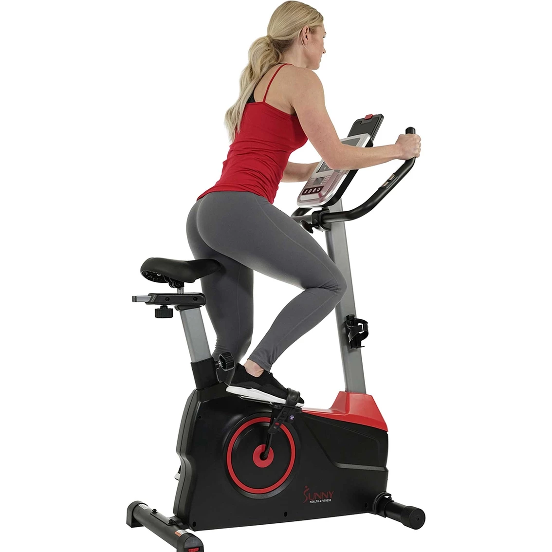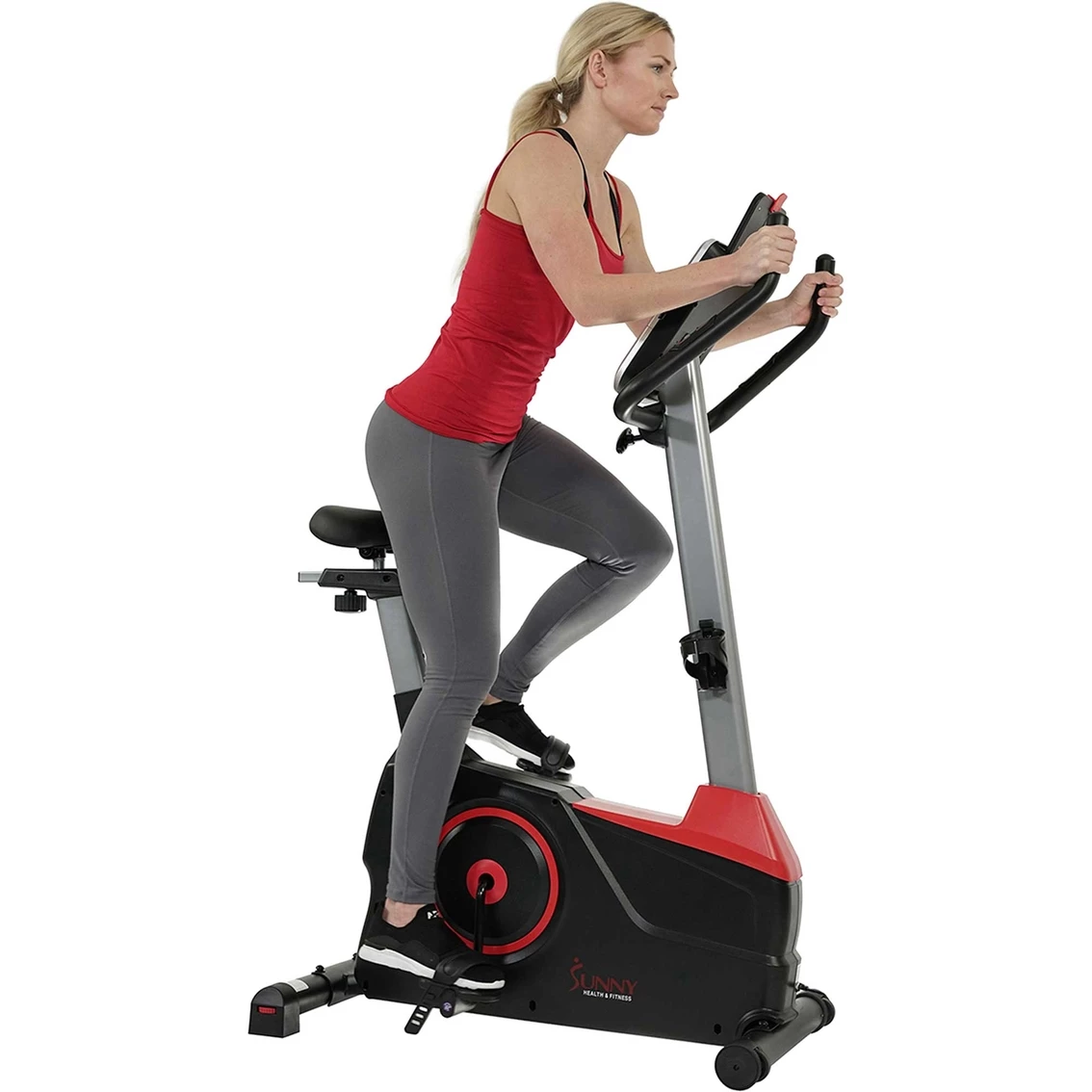Electro-magnetic resistance exercise bikes bring diversity and intensity to your workout routine. Unlike manually adjusted resistance bikes, electromagnetic resistance changes resistance levels smoothly at the press of a button or according to a user-selected exercise program. Combined with a 300 lb max weight capacity, this adjustable exercise machine could be customized to fit nearly any user. The Sunny Health and Fitness Evo-Fit Exercise Bike is the next evolution in helping you reach your fitness goals. Model: SF-B2969.
