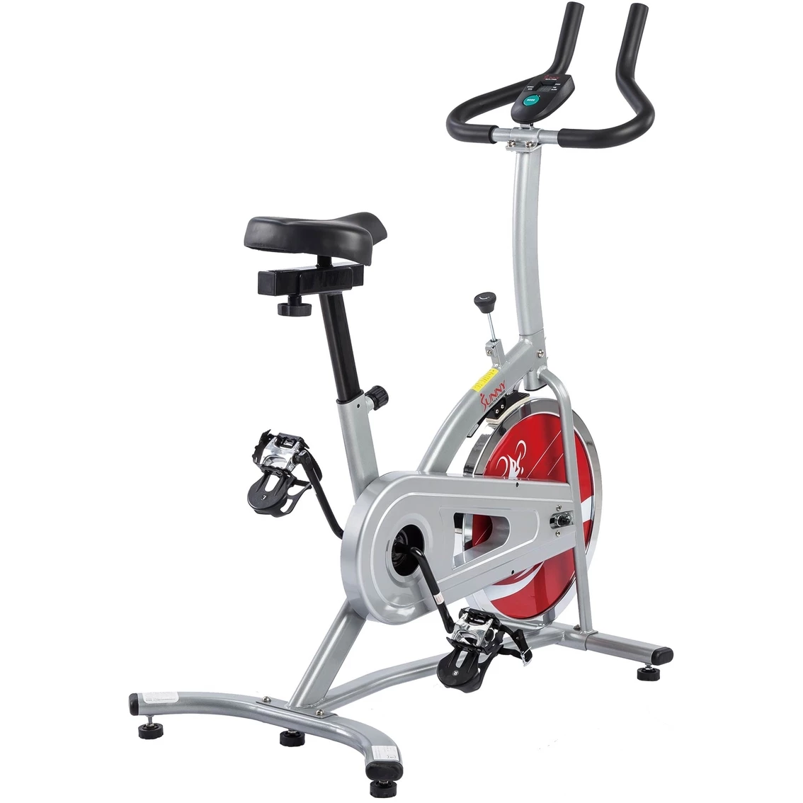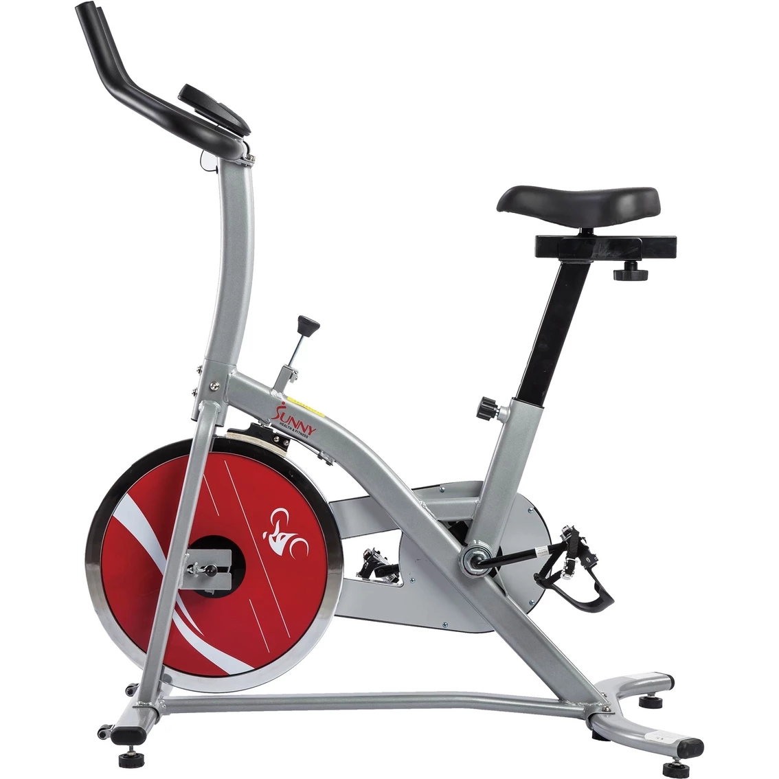 Get a full cardio workout, in any weather, with this Sunny Health and Fitness Indoor Cycling and Exercise Bike with LCD Meter. It features a 22 lb. flywheel and chain drive mechanism, allowing you to have smooth and quiet workouts to your favorite music or television shows. The built-in LCD meter displays your workout time, current speed, distance traveled and amount of calories consumed, helping you monitor your workout. The seat, handlebars and the resistance are all adjustable and the pedals have toe cages to keep your feet in place. The recommended maximum user weight for this Sunny Health and Fitness Indoor Cycling and Exercise Bike is 240 lb. Model: SF-B1203.