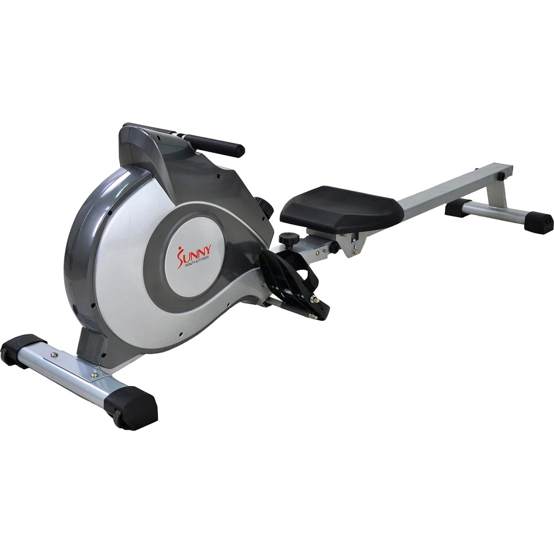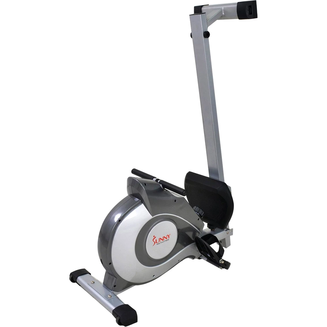 Row into shape with the top of the line Sunny Health and Fitness Magnetic Rowing Machine. This rower offers all of the necessities for an intense yet enjoyable rowing workout in the comfort of your own home. The newly improved smoother and quieter magnetic tension system has 8 levels of adjustable tension. With convenient large LCD console, fully padded seat, larger anti-slip foot pedals and built-on transportation wheels, the Sunny Health and Fitness SF-RW5515 Magnetic Rowing Machine is designed for convenience while also providing the challenging feel of an outdoor rowing. The quality of its heavy-duty steel mainframe is built to withstand time and go the distance with users of all sizes and levels. Maximum user weight: 250 Lb. Model: SF-RW5515.