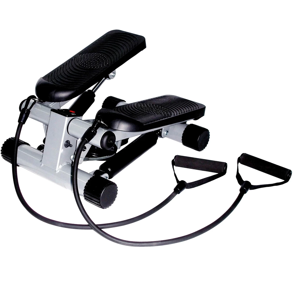 Get a total body toning workout, in the comfort of your own home, with this Sunny Health and Fitness Mini Stepper with Bands. This compact stepper features adjustable resistance, a heavy duty steel frame construction, oversized slip resistant foot plates and an LCD display to track workout progress. It is designed to support up to 220 lb. of weight. Model: No. 12-S.