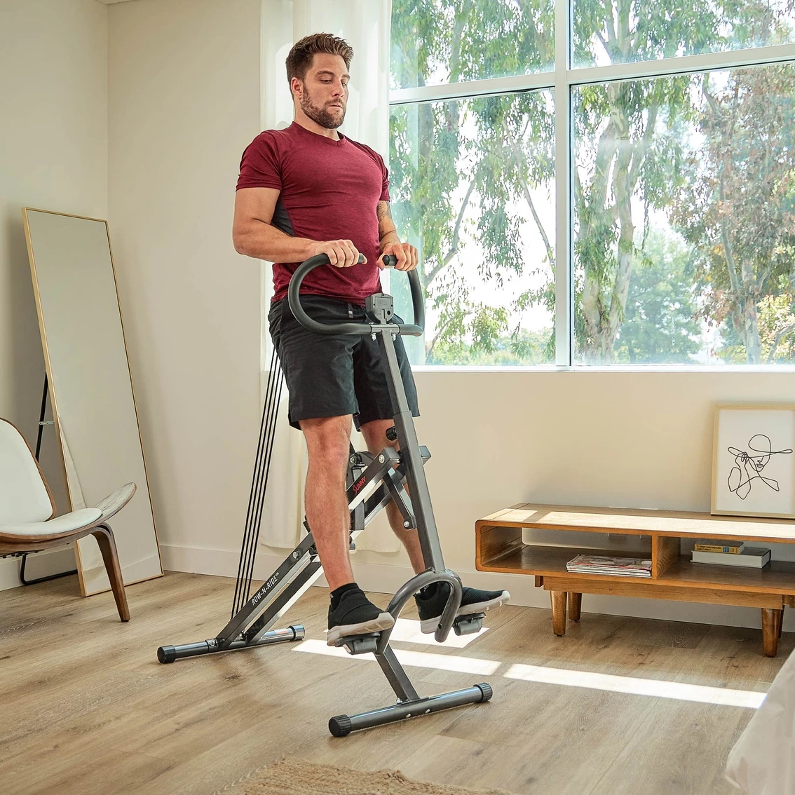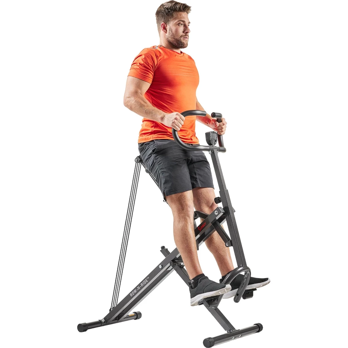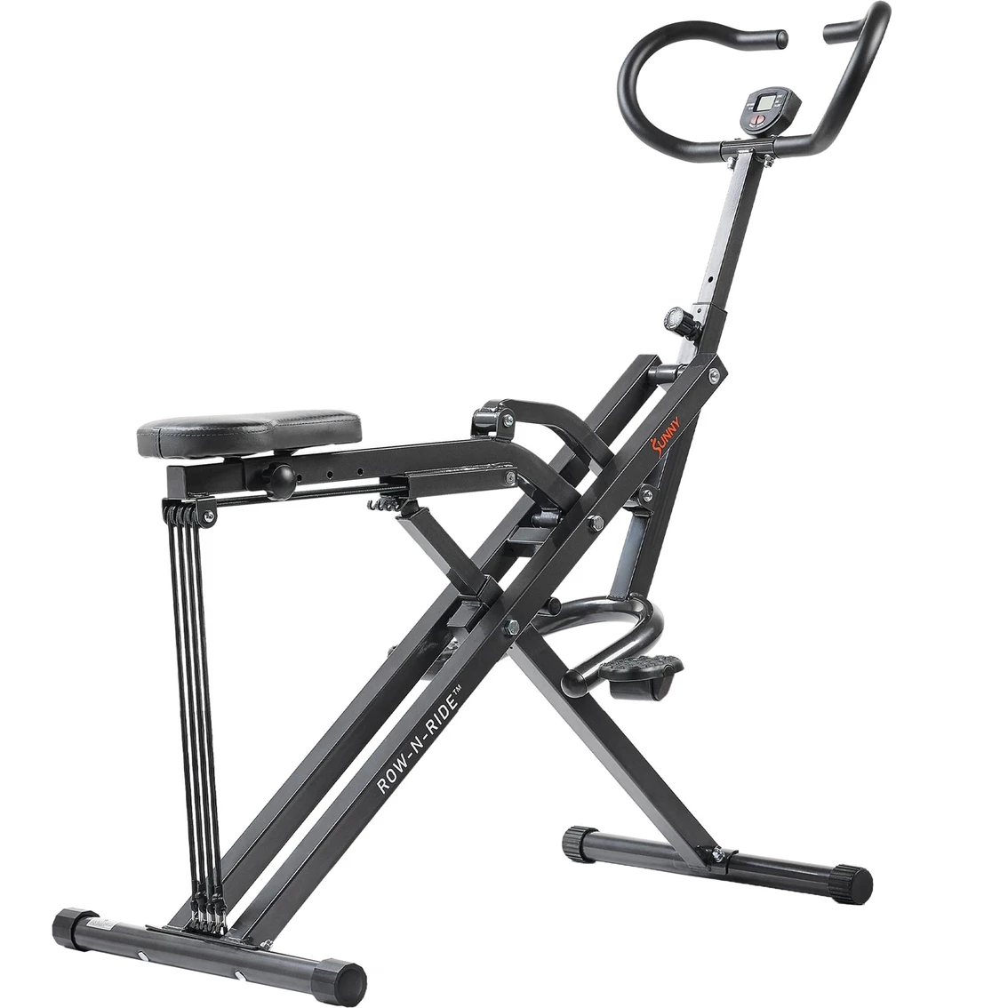 The Sunny Health and Fitness Row-N-Ride Plus assist those looking for an easy, convenient and effective workout in developing and toning their glutes, quads, hamstrings and much more. The assisted squat motion promotes consistent usage of compound movements which activates multiple muscle groups and help burn calories more efficiently. Designed to be sturdy and space saving, the Row-N-Ride Plus is the ideal home workout exercise squat machine. It features 4 resistance bands that lets you add just the right amount of intensity to your workouts. Stay focused on your goals and track your progress with the Digital Monitor which tracks: Calories, Count, Reps/Min, Time and includes a Scan function. Curved, contoured handles add potential variations to your grip and workouts Ergonomic design aids in comfort when performing assisted squats. Featuring 4 resistance bands rated at 22 lb. each, the Row-N-Ride Plus increases the intensity of your assisted squats and helps to shape your glutes, thighs and legs. Model: NO. 077PLUS.