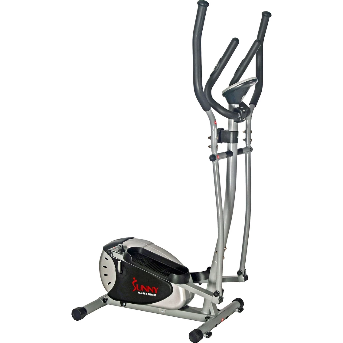 Get fit faster with the Sunny Health and Fitness SF-E905 Magnetic Elliptical Bike. Tracking your progress is simple with the Digital Monitor screen. Displaying your time, speed, distance, calories burned and scan, you will be able to see your results to keep you motivated and on pace. With a convenient scan mode, you can choose to have these features continuously repeated to keep up with all calculations. Use the Pulse Monitor to monitor and maintain your target heart rate. The more steady and prolonged the elevated heart rate is during the workout, the more fat is burned. Oversized textured non-slip footplates will accommodate all sizes, while remaining grip to ensure safe footing during the most demanding vigorous workouts. Switch up the intensity of your workout with the convenient tension knob. With a simple twist, you can increase or decrease resistance so your workout can remain challenging and effective throughout your fitness journey. Model: SF-E905.