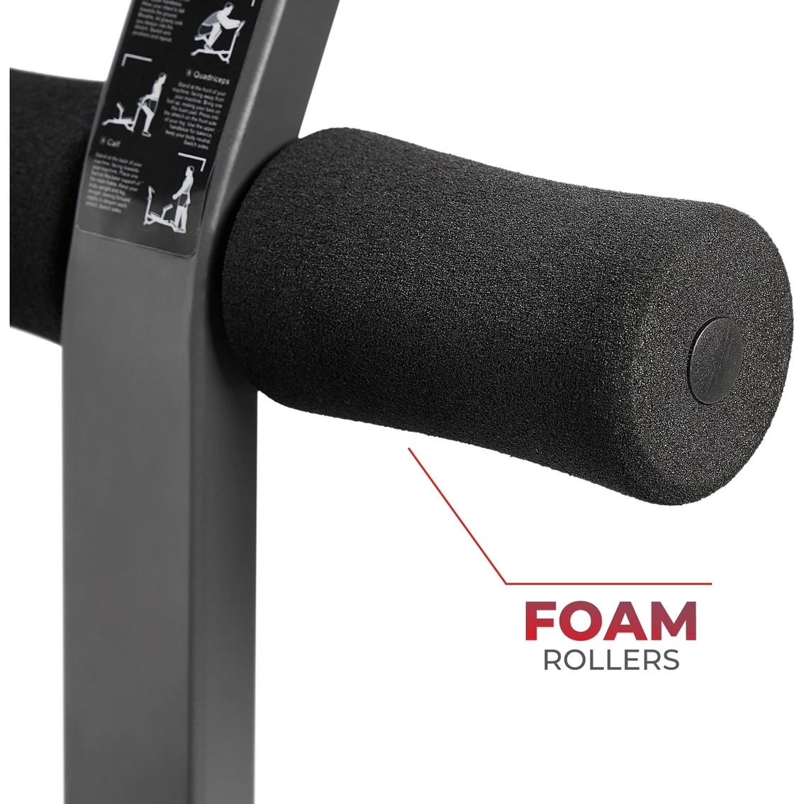 Push and pull your limits further with the Sunny Health and Fitness Stretch Training Machine. Aim to be more limber and flexible, decompress your back and relax tight muscles to increase blood flow. Featuring a space-efficient and lightweight design, the Stretch Training Machine is an effective solution to compliment your home gym or to just squeeze in a quick stretch. Kick your feet up, decompress, and stretch using the padded foam rollers. 2 pairs of safety straps located on the front post of the stretch machine will help ensure the safe operation of the stretch trainer machine. Go further in your stretches with a travel distance of over 24 in. Large, cushioned seating and knee pad provide exceptional comfort and support. Never lose your step and recover quickly for your next stretch position. Switch grips to assist in targeting and focusing on specific areas or positions. Featuring a small footprint and lightweight design (less than 30 lb.), obtain big stretches in a space-efficient form factor and itโs compact enough for easy storage. Model: SF-BH621002.