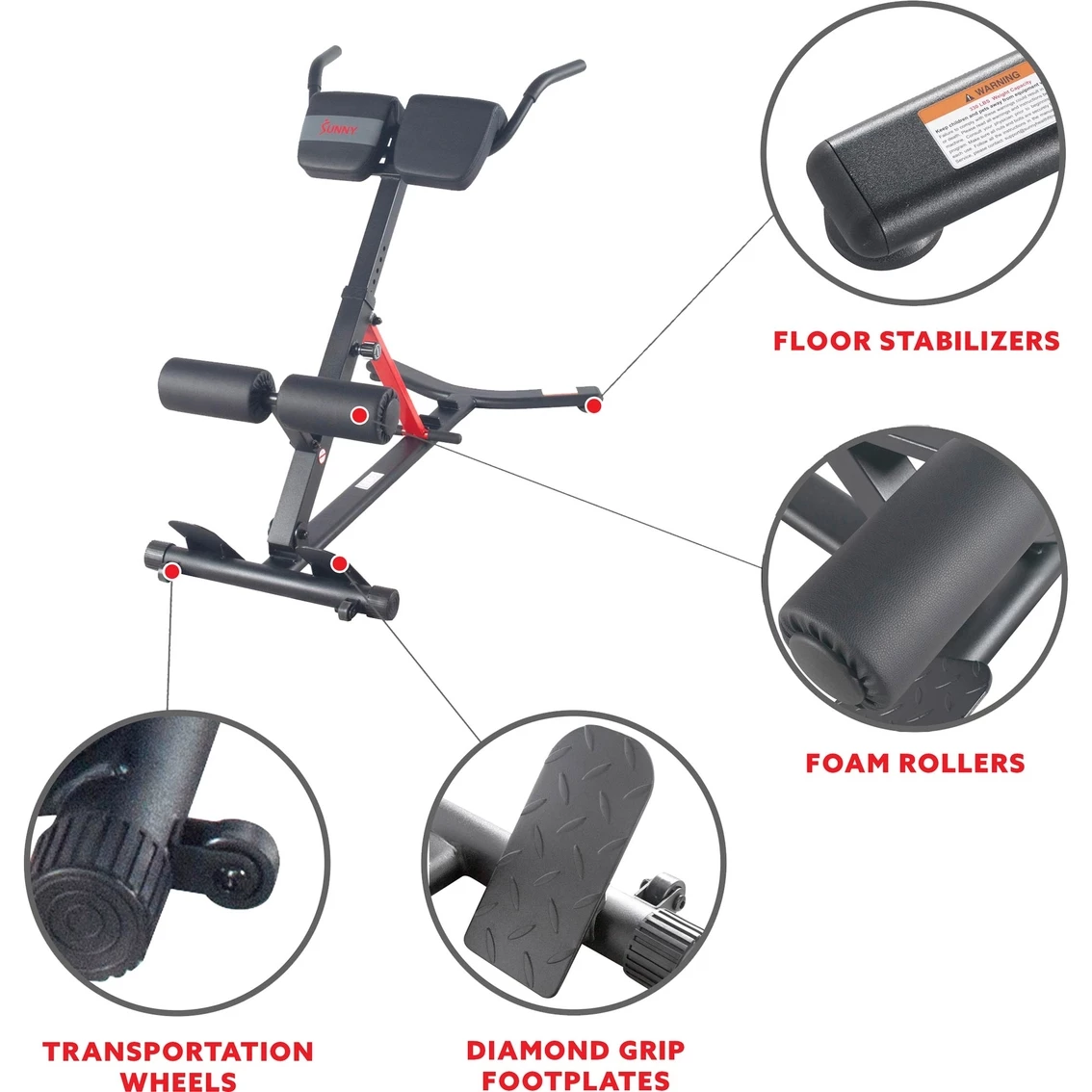 Whether you’re looking to add another piece to your home gym or get in a quick but intense workout in your living room, the Sunny Health & Fitness Foldable Roman Chair would be a perfect inclusion. The integrated dip bars provide for a multi-functional home workout experience. Adjustable, portable, comfortable, and convenient, the Sunny Health & Fitness Foldable Roman Chair (SF-BH620062) may just be the missing piece of equipment you need to complete your total body workouts.
