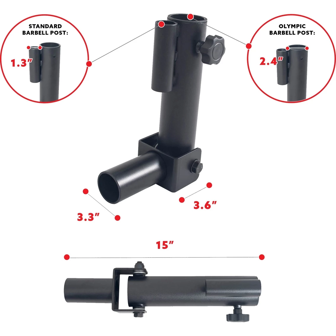 – Barbell: Fits 1 โ 2 in. Olympic-sized barbells.