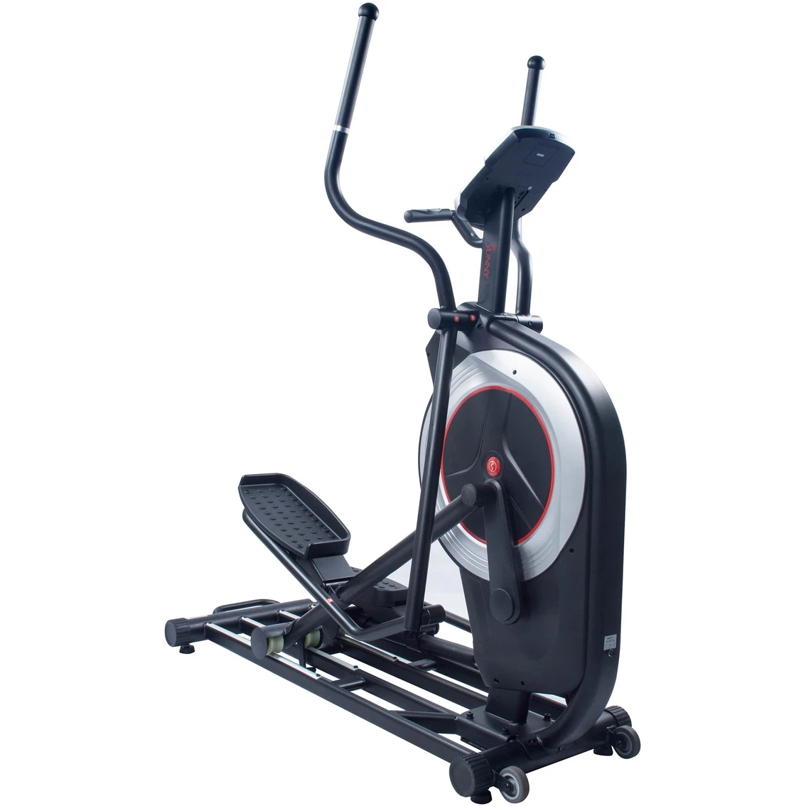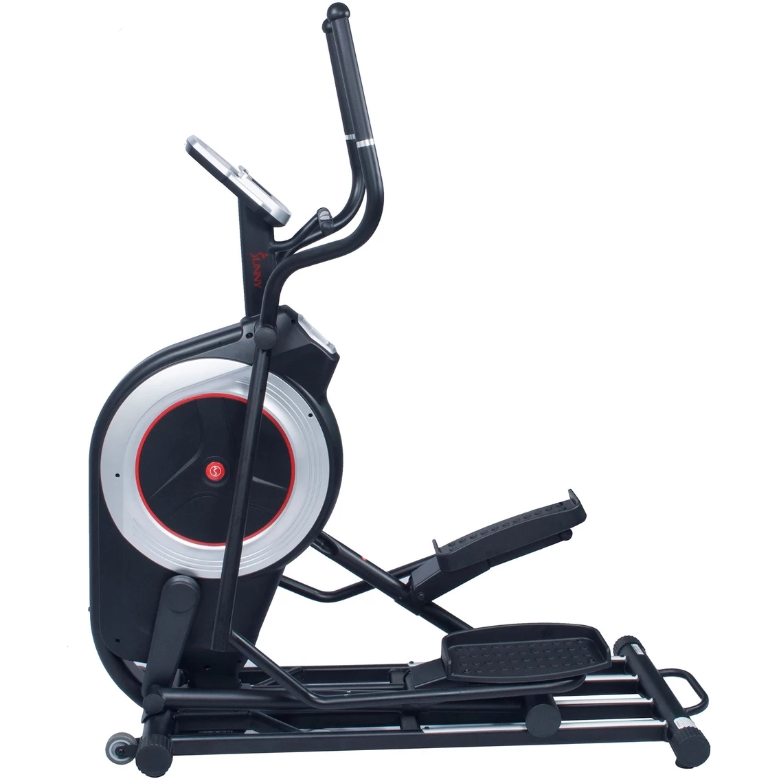 Start a low-impact cardiovascular training routine with the SF- E3875 Programmable Elliptical Trainer by Sunny Health & Fitness. Stride confidently when you step onto the oversized textured footplates that are designed for optimal grip and balance. Crafted for long-lasting workouts, the durable steel frame on the elliptical cross trainer supports a maximum user weight of 300lb. Grab the full motion handlebars that are equipped with anti-slip padding to build muscular endurance in your arm, shoulders, back, and chest. Use the pulse grips on the elliptical machine to track your heart rate in real time. Striding in a controlled motion is a great solution for individuals searching for cardiovascular activities that can reduce impact on the knees. Designed for dynamic workouts, you can pedal forward and backward along the 19.5 in. stride length, while working every muscle in your lower body. Increase workout intensity by adjusting the 16 levels of computerized resistance in a matter of taps. Use the integrated performance monitor to track your time, distance, speed, calories burned, heart rate, wattage production, and rotations per minute. Take advantage of 24 different program modes that can drive your training to the next level. Take advantage of the preset goal-driven workouts that base your performance on watt generation, BMI data, and custom user values. Keep your favorite workout beverages close with the front-loaded water bottle holder. When finished, easily move this indoor elliptical from one location to the next with the rubber transportation wheels. Model: SF-E3875.