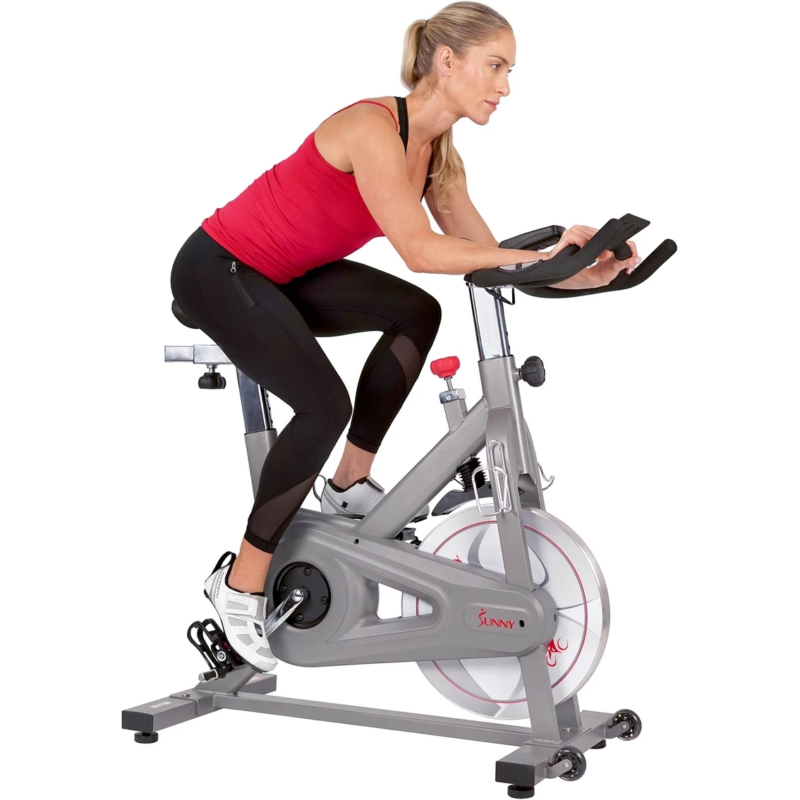 Start a new in-home fitness routine with the Synergy Pro Magnetic Indoor Cycling Bike from Sunny Health & Fitness. Ergonomically designed, this bike has a rounded multi-grip handlebar and 4-way adjustable seat that can help maintain your comfort and stability while you exercise. Cycling on an indoor bike is a low-impact exercise that can strengthen your cardiovascular performance and engage muscles in your arms, core and legs.