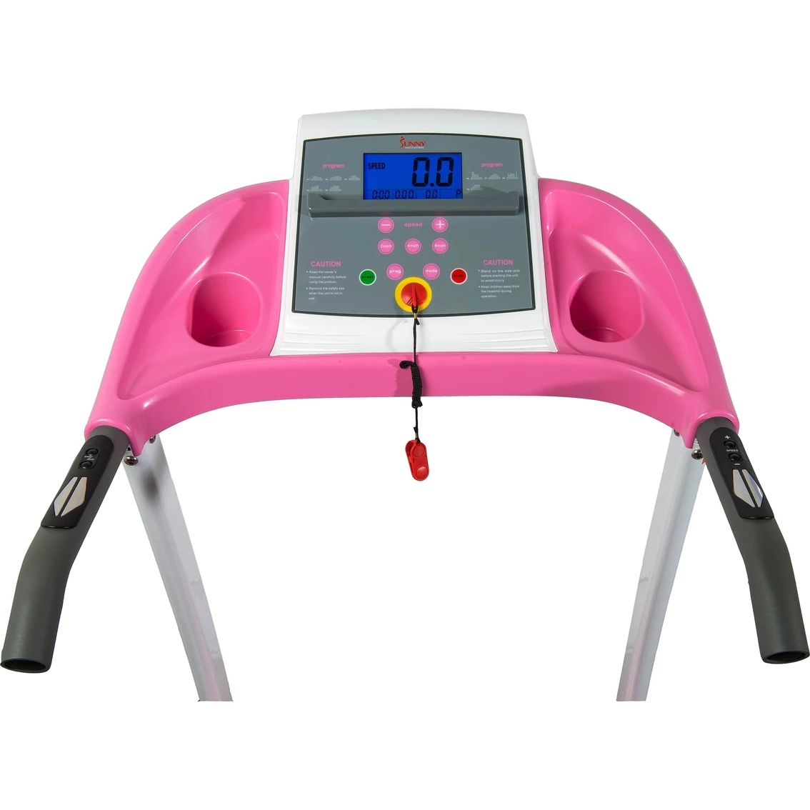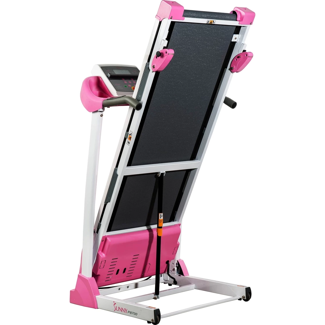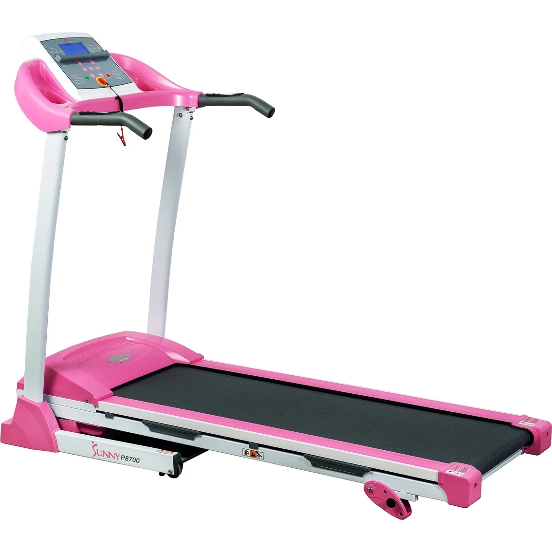 The new standard in home fitness! Sunny Health and Fitness P8700 Pink Treadmill offers all of the necessities for an amazing cardio workout that all at-home fitness enthusiasts could wish for in a treadmill. It has a newly improved and quieter 2.20 Peak HP drive system with a minimum speed 0.5 mph and a maximum speed 9 mph. The 48.82 x 15.75 in. running surface includes 3 manual incline levels. Large LCD displays time, speed, distance, calories burn and pulse. The P8700 Treadmill is designed for convenience while also providing the challenging feel of an outdoor walking, jogging or running. The quality of its heavy-duty steel mainframe is built to withstand time and go the distance with users of all sizes and levels.