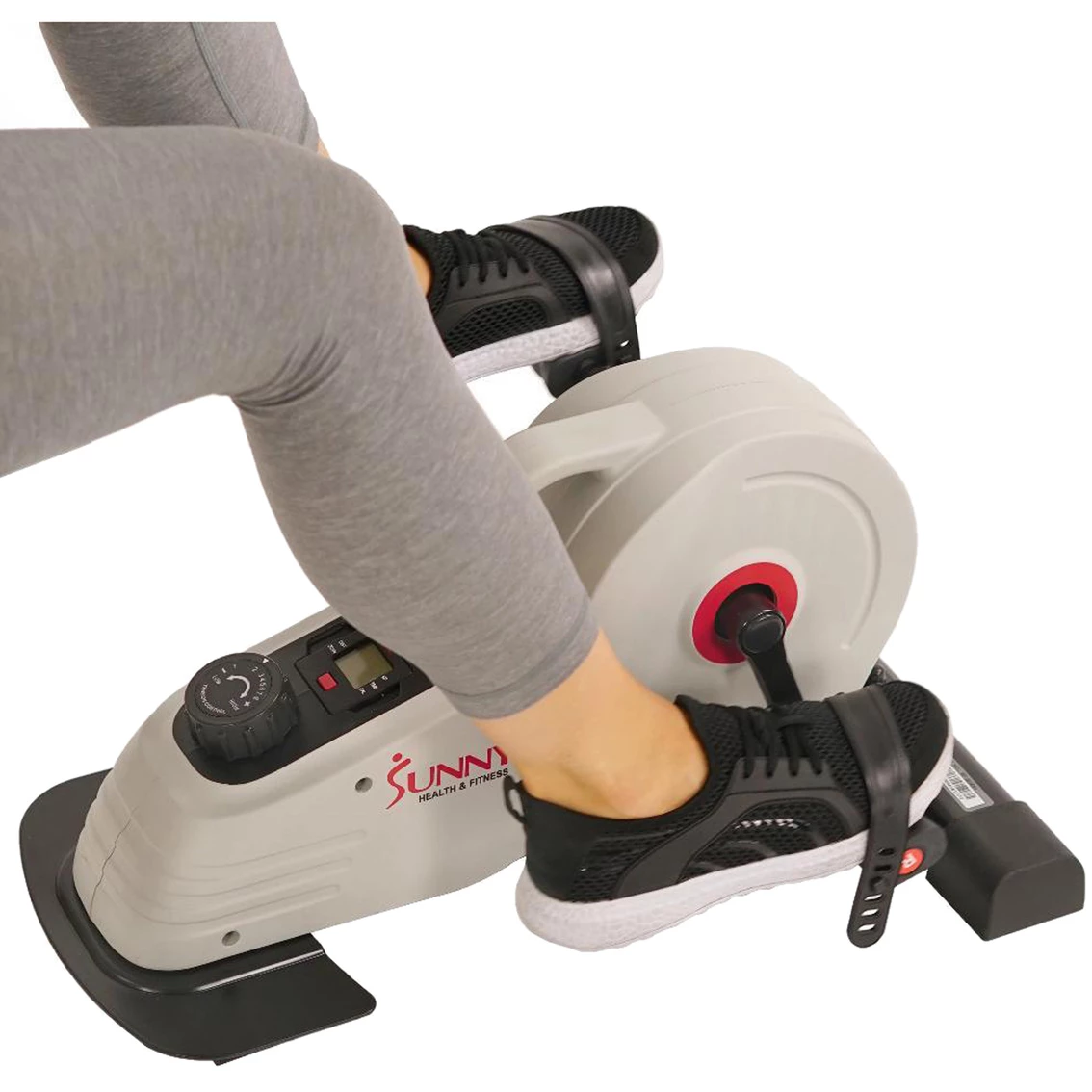 Make room for physical activity when you are sitting with the Sunny Health and Fitness SF-B0891 Under Desk Magnetic Cycle. Slide your feet onto the pedals with adjustable straps. Achieve a 7-in. stride length smoothly, quietly and consistently on this under-the-desk machine while you are seated. This machine is crafted around silence. Engage the smooth belt-drive mechanism and the 3.52-lb. flywheel as you pedal forward. The pedals have a peak height of 10 in. and bottom height of 3 in. when on the ground.