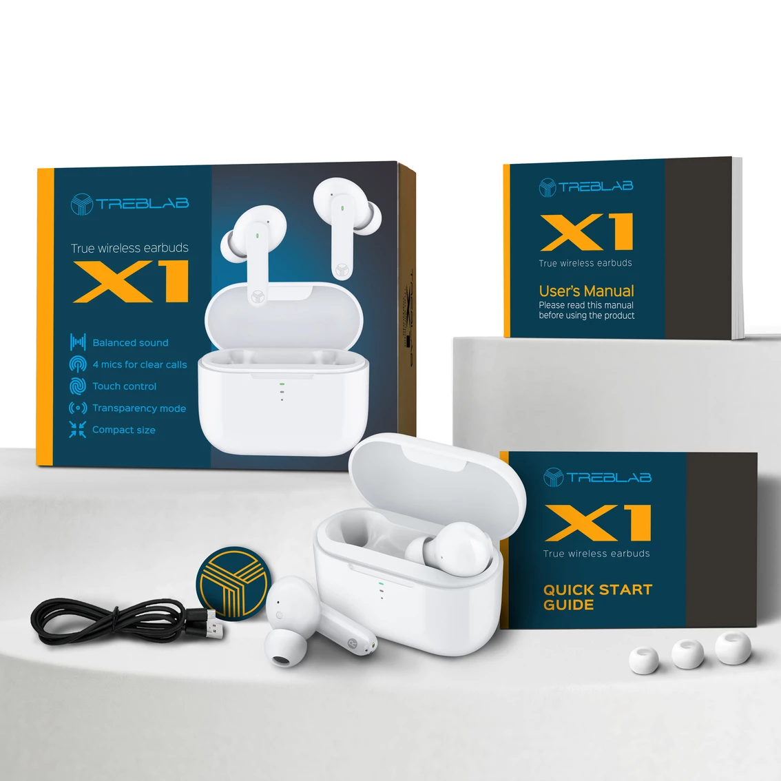 Discover incredible sound quality at the tip of your fingers with Treblab X1 true wireless earbuds with microphone capabilities.