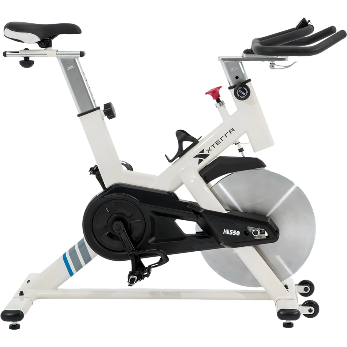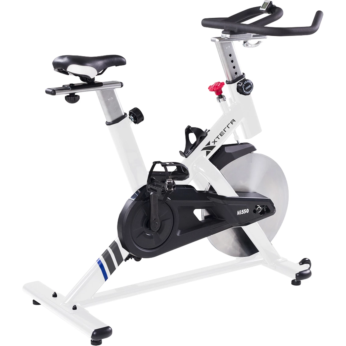 The XTERRA MB550 Indoor Cycle Trainer Bike combines the quality, performance, and great looks you desire in a design that is built as solid as they come. And it incorporates numerous thoughtful features that were developed with your performance and comfort in mind. From the heavy 48.5 lb precision balanced flywheel and smooth belt drive system to the electronic console and fully adjustable seat and handlebars, every aspect of the MB550 helps users keep moving and stay motivated. With the XTERRA status comes the XTERRA seal of approval with an impressive lifetime frame and 1 year parts and labor warranty. Start on the road to fitness today with the new XTERRA MB550 Indoor Cycle and exceed your expectations. Model: MB550.