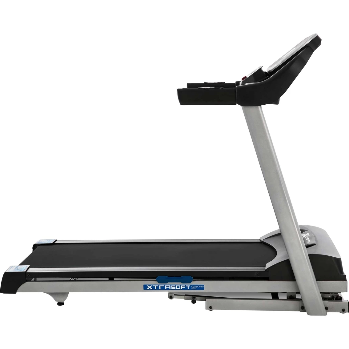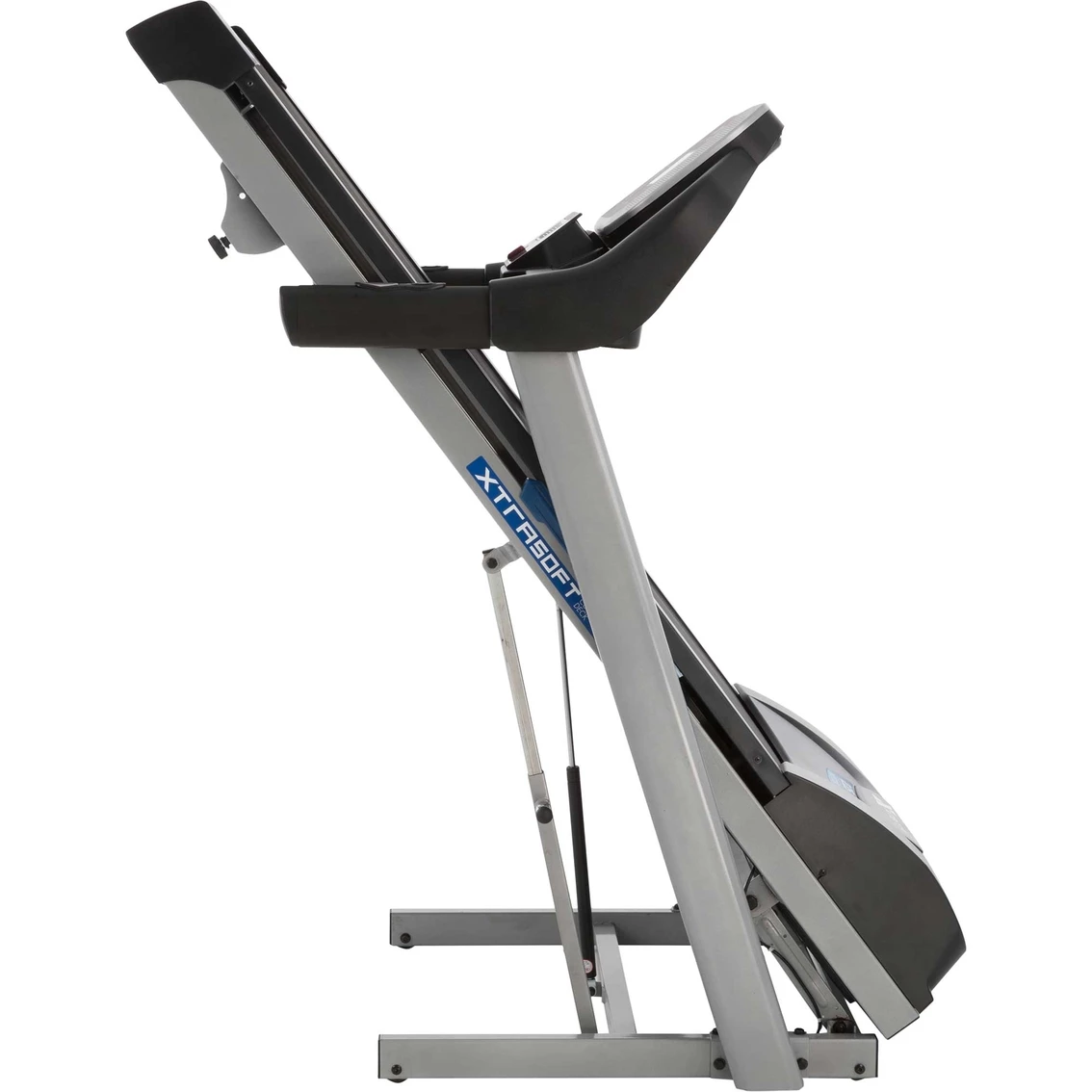 The powerful XTERRA 2.25 HP motor provides speeds up to 10mph while the users can also vary the large 20 x 55 in. belt to incline levels from 0-10% for maximum workout variety. When not in use you can fold up the treadmill with the Lift Assist frame design, which also includes a Safe Drop feature that slowly lowers the deck for added safety. Built as tough as the ultimate race it is named after, this XTERRA treadmill delivers performance and results! Model: 125817.