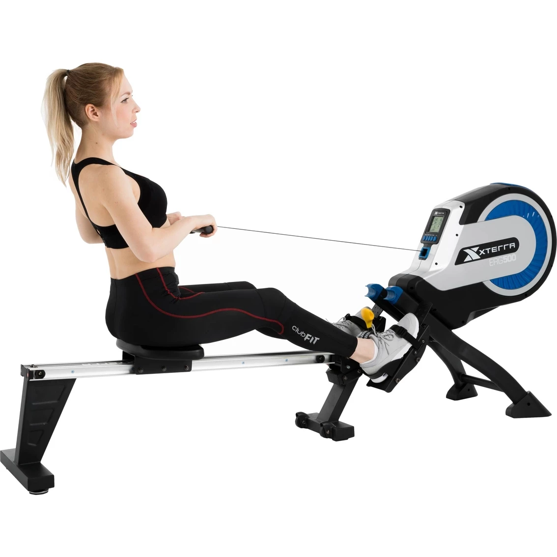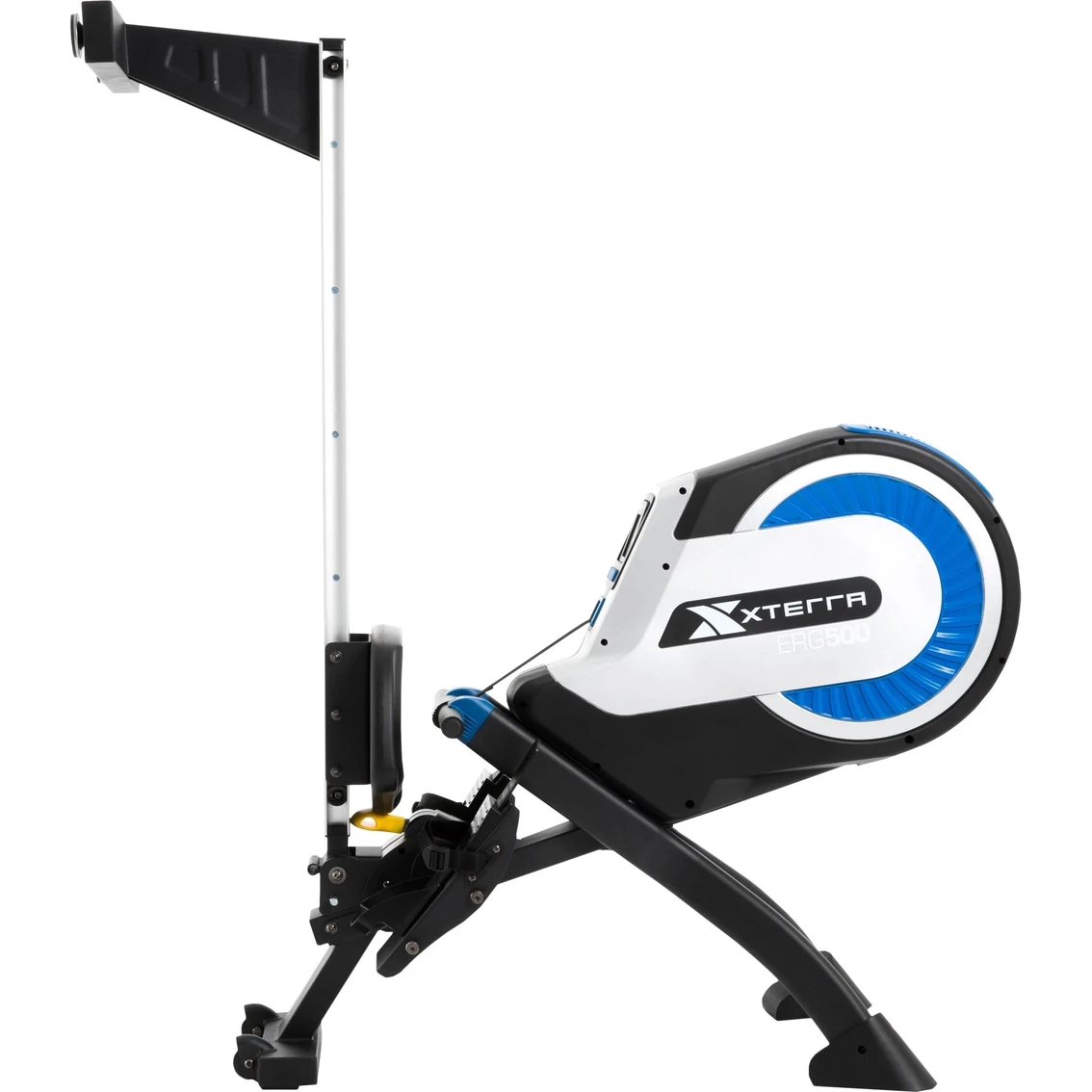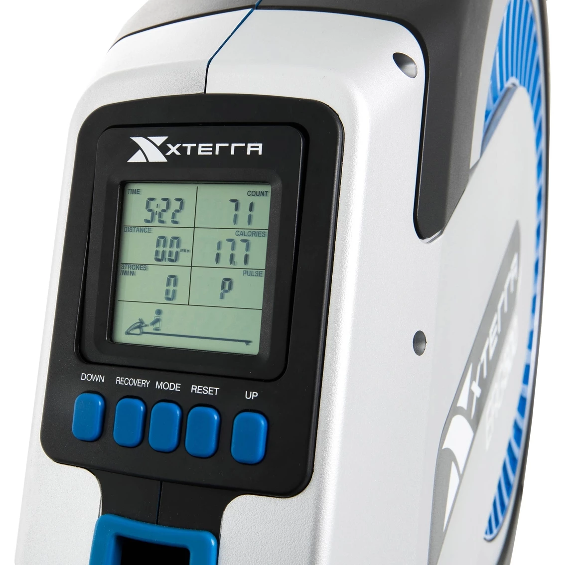XTERRA is best known for durability and performance. The ERG500 carries on this tradition with a sturdy steel frame design to limit frame flex, dual aluminum slide rails for smooth action, large contoured seat, padded row handle with convenient holder, and flexing foot pedals that allow you to maintain proper form by pivoting with your every movement. Console feedback provides time, distance, strokes/min, count, calories, pulse, and a visual stroke display graphic. The console features easy-to-use buttons that are clearly labeled and a pivoting viewing angle for users of all sizes.